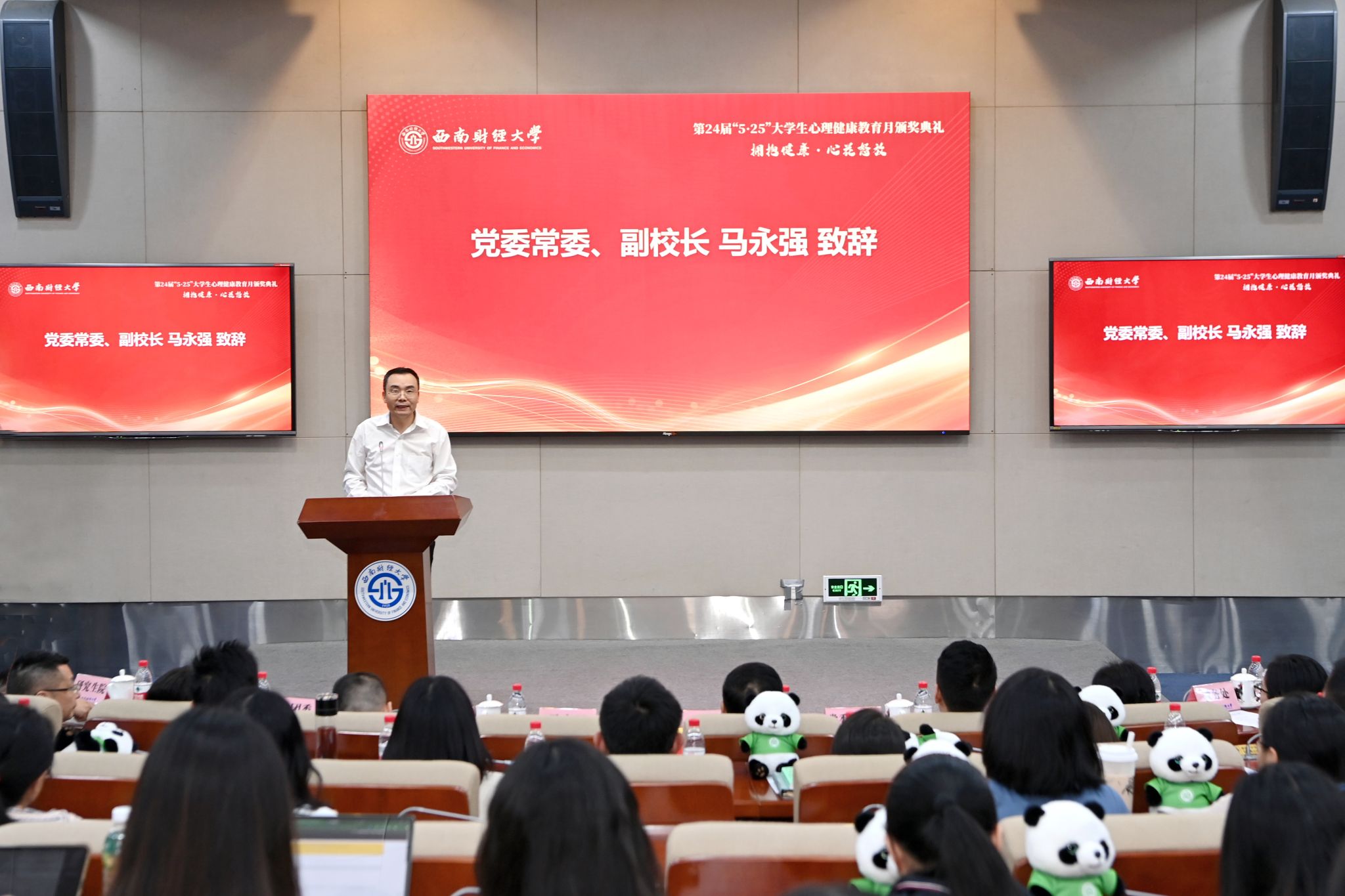 馬永強致辭,代表學校向受到表彰的先進集體和優秀個人表示祝賀。他指出,學校始終站在為黨育人、為國育才戰略全局,高度重視心理健康教育工作,將其貫穿立德樹人全過程、各環節。高質量做好心理健康教育工作,要深研青年學生心理健康教育規律,關愛守護心靈成長,數智賦能精準施策,切實提升心理育人精準度、實效性。