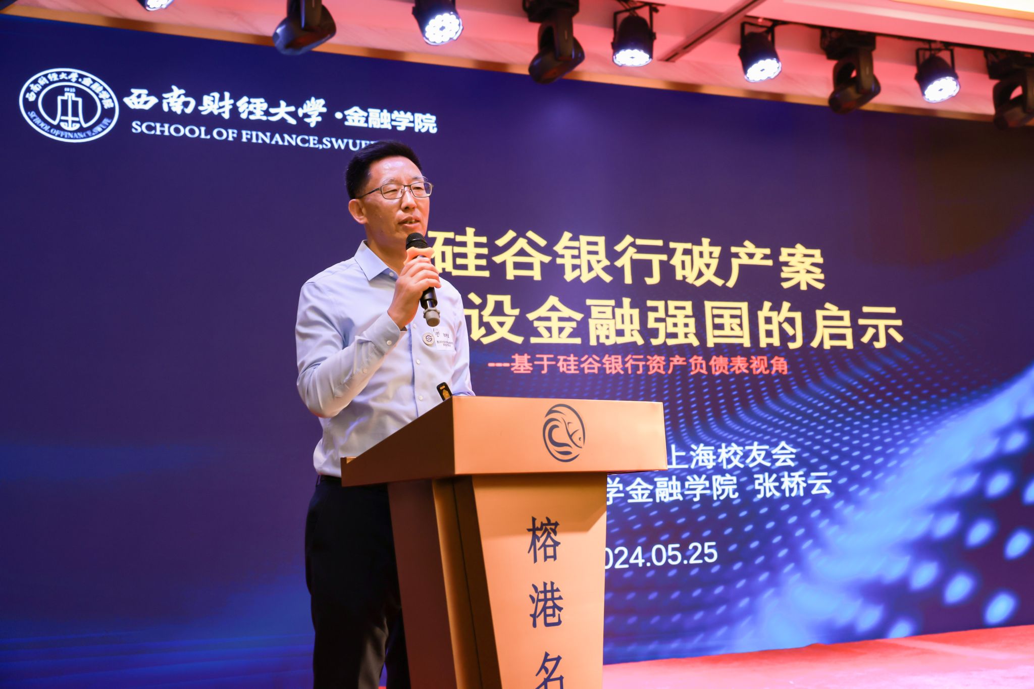 在與會校友、全球高校上海校友聯(lián)盟及政府嘉賓的見證下,西財上海校友會合作委員會成立儀式及“全球高校上海校友聯(lián)盟+四財”戰(zhàn)略合作儀式順利舉行。未來將通過戰(zhàn)略合作增強校友凝聚力,促進資源共享,共同推動各校校友會、各地方校友會向新向好發(fā)展。隨后,姜明生代表西財上海校友會向母校贈禮,李永強接受贈禮。金融學院原執(zhí)行院長張橋云教授作題為“美國硅谷銀行破產(chǎn)案對建設(shè)金融強國啟示”精彩講座。