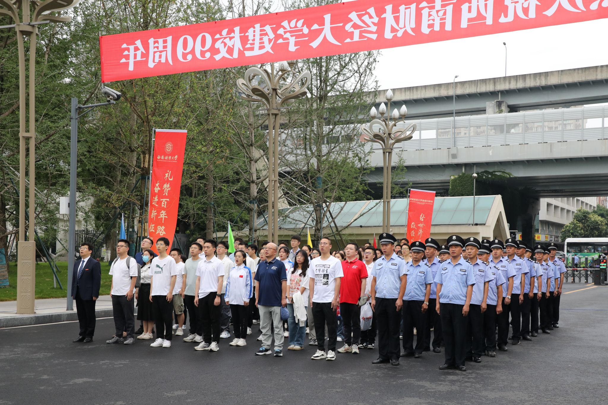 校領(lǐng)導(dǎo)發(fā)表熱情洋溢的講話。他們深情回顧了學(xué)校99年來從黃浦江畔到浣花溪邊,始終與國家共命運(yùn),始終堅(jiān)持黨的全面領(lǐng)導(dǎo),風(fēng)雨兼程繪就團(tuán)結(jié)奮斗、搶抓機(jī)遇、創(chuàng)新發(fā)展、追求卓越壯麗畫卷的崢嶸歷程。他們指出,明年此刻學(xué)校將迎來建校100周年。獻(xiàn)禮百年西財(cái),要不忘立德樹人初心,牢記為黨育人、為國育才使命,努力培養(yǎng)更多讓黨放心、愛國奉獻(xiàn)、擔(dān)當(dāng)民族復(fù)興重任的時(shí)代新人。要以更大擔(dān)當(dāng)服務(wù)國家戰(zhàn)略需求,堅(jiān)持教育、科技、人才一體推進(jìn),不斷增強(qiáng)辦好人民滿意高等財(cái)經(jīng)教育的責(zé)任感、使命感、緊迫感。要全面推進(jìn)學(xué)校“新財(cái)經(jīng)”戰(zhàn)略升級,在進(jìn)一步全面深化改革中推動高質(zhì)量發(fā)展,加快建設(shè)財(cái)經(jīng)特色鮮明的世界一流大學(xué),為以中國式現(xiàn)代化全面推進(jìn)強(qiáng)國建設(shè)、民族復(fù)興偉業(yè)作出新的更大貢獻(xiàn)。