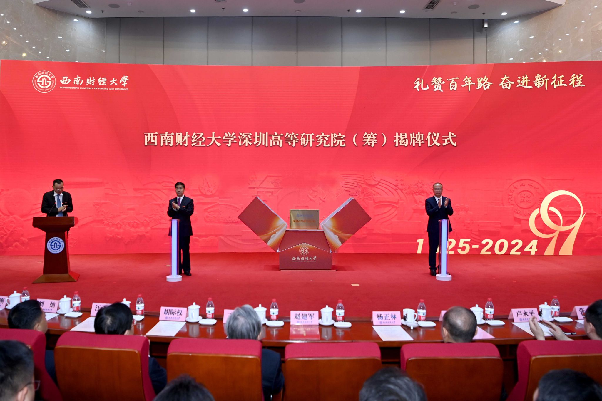 趙建軍、李永強共同揭幕西南財經大學百年校慶標識,并為西南財經大學深圳高等研究院(籌)揭牌。