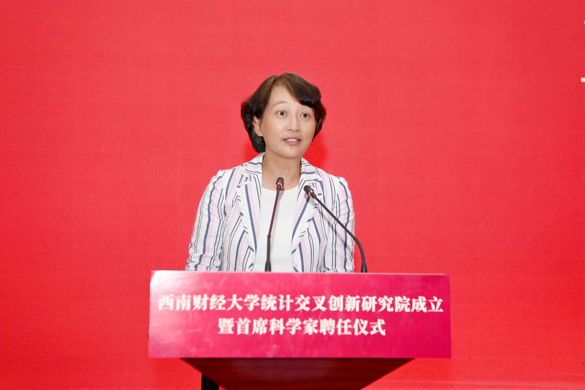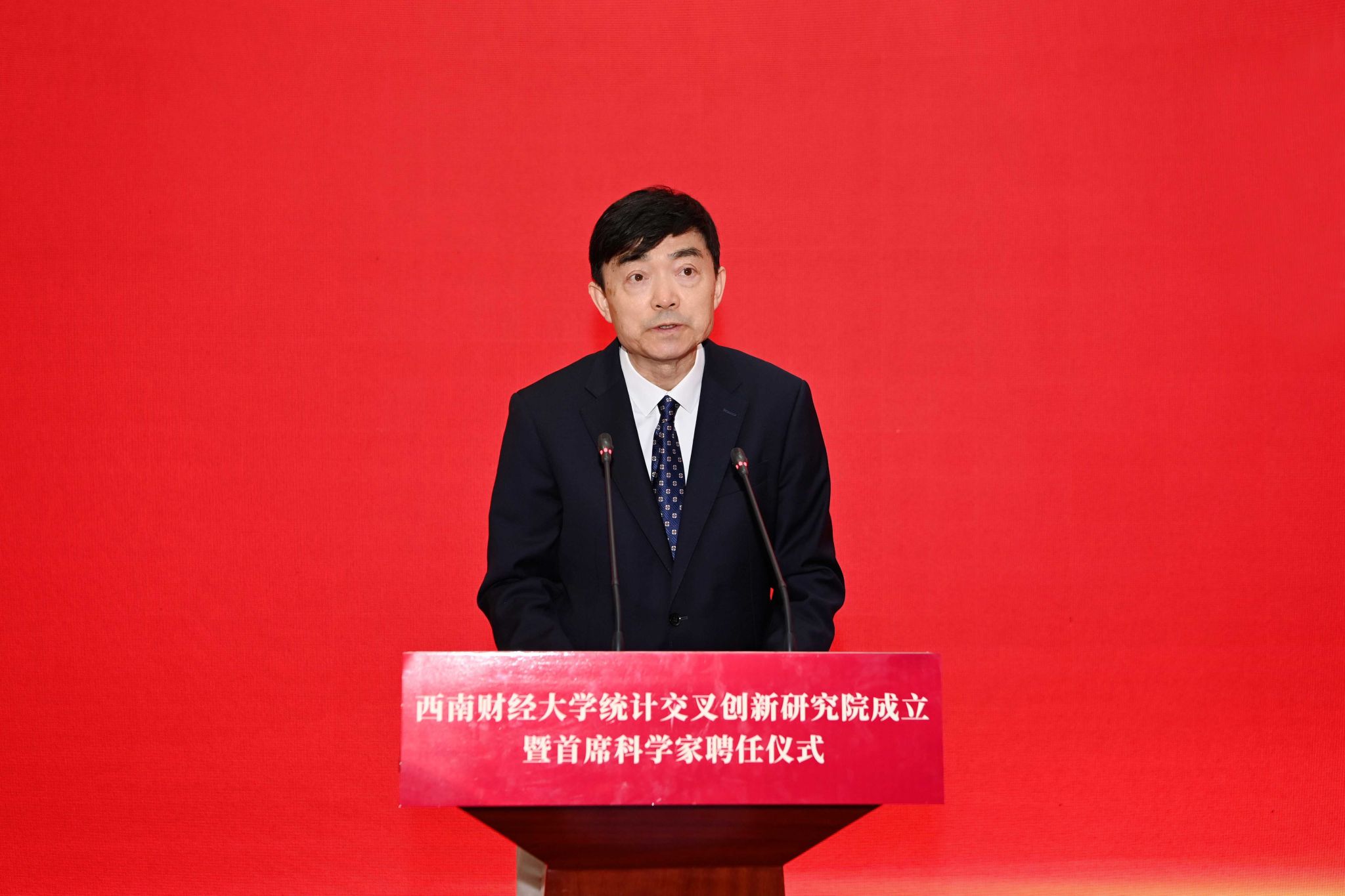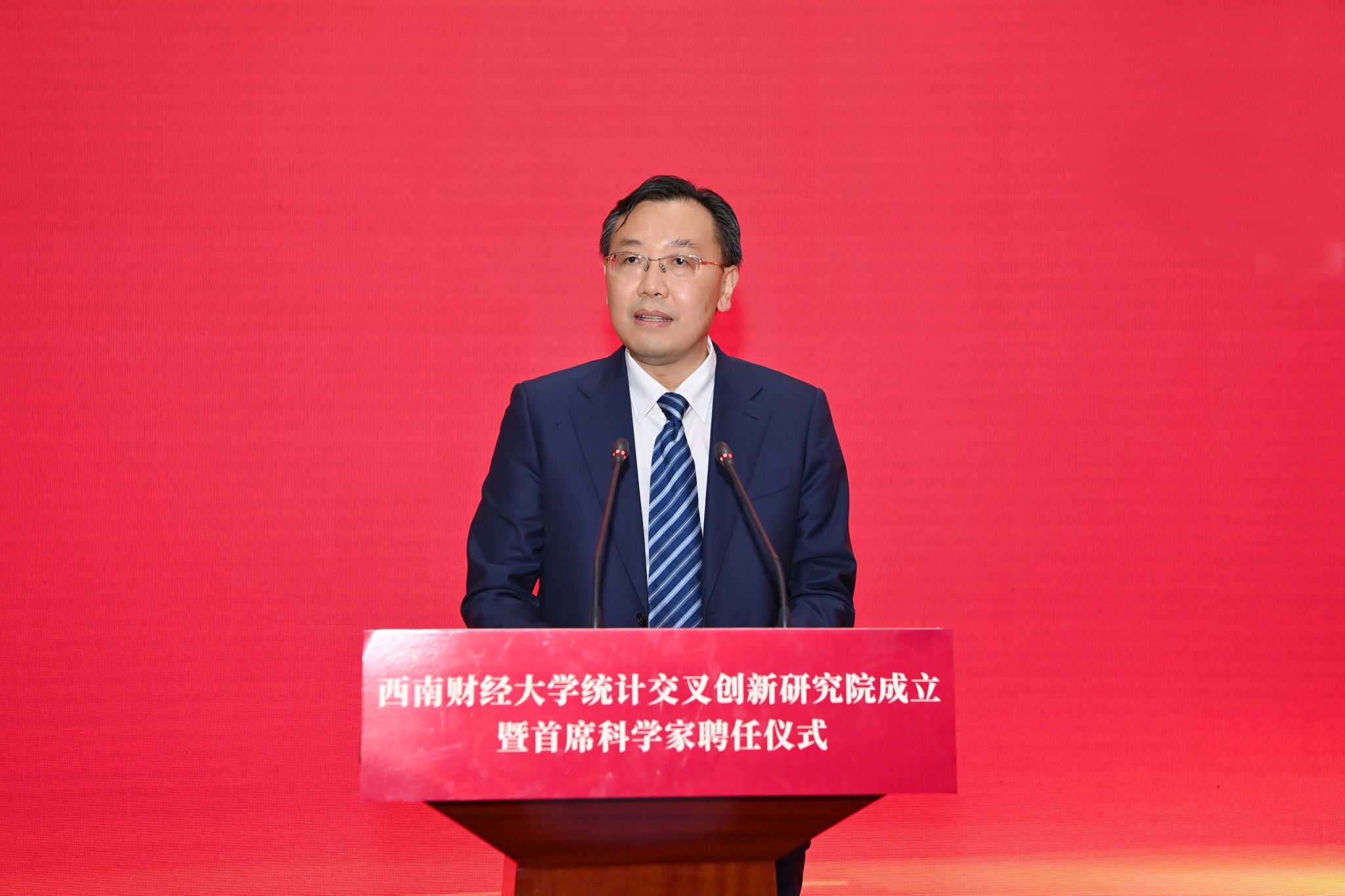 6月3日,西南財經大學統計交叉創新研究院成立暨首席科學家聘任儀式在柳林校區弘遠樓105會議室舉行。中國科學院院士陳松蹊,四川省科學技術協會黨組書記、副主席毛大付,省委教育工委副書記、教育廳黨組成員張瀾濤,省委組織部二級巡視員、公務員二處處長楊瑛,成都市工商聯主席、總商會會長俞建,全體校領導出席儀式。黨委書記趙建軍致辭,黨委副書記、校長李永強主持儀式。相關職能部門主要負責人、各學院(研究院)院長、校友代表、師生代表參加儀式。