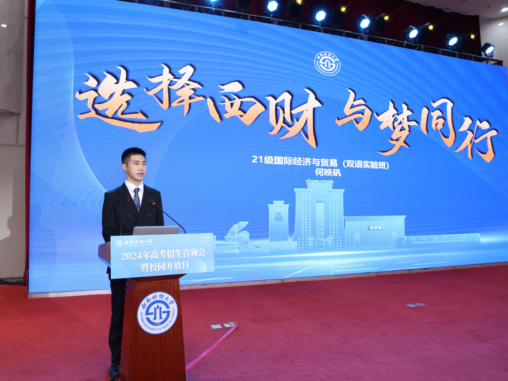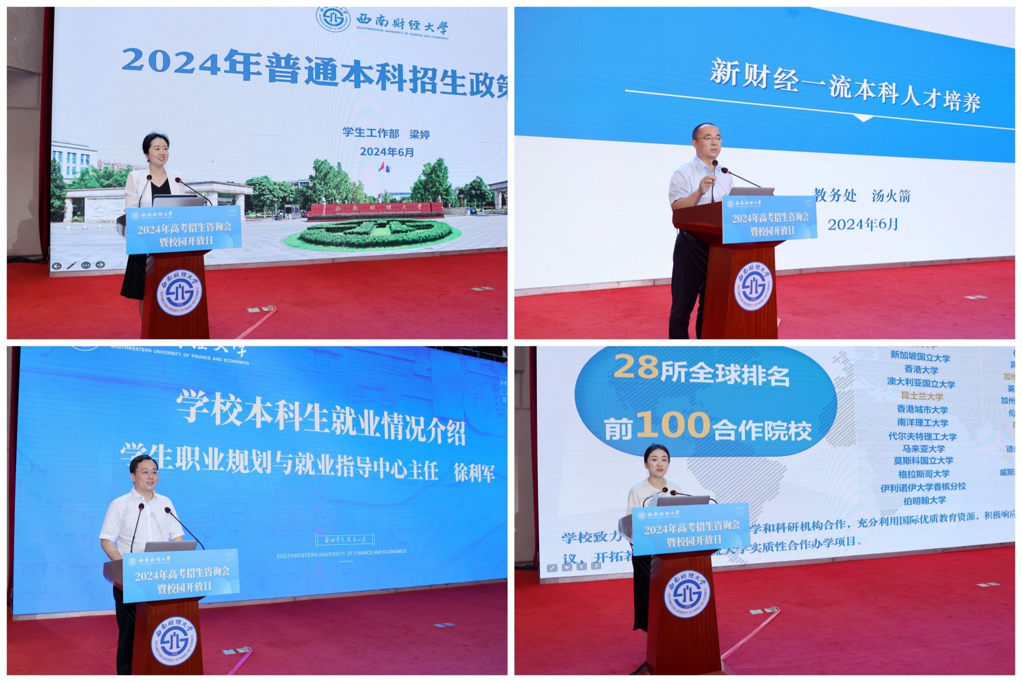 招生政策宣講會上,馬永強對考生和家長的到來表示熱烈歡迎,并詳細介紹了學校的歷史沿革、學科實力和師資力量,特別介紹了學校在財經類復合型創(chuàng)新人才培養(yǎng)方面的杰出實踐,期望各位考生能夠圓夢西財、實現人生理想。相關職能部門負責人分別對學校2024年普通本科招生政策、“新財經”一流本科人才培養(yǎng)體系、學生升學就業(yè)和國際交流合作情況進行深入解讀。優(yōu)秀學生代表、國際商學院2021級本科生何昳礬分享了自己在西財的成長經歷和學習收獲。宣講會在西南財經大學本科招生辦微信視頻號、中國教育在線、高考寶等平臺同步直播。