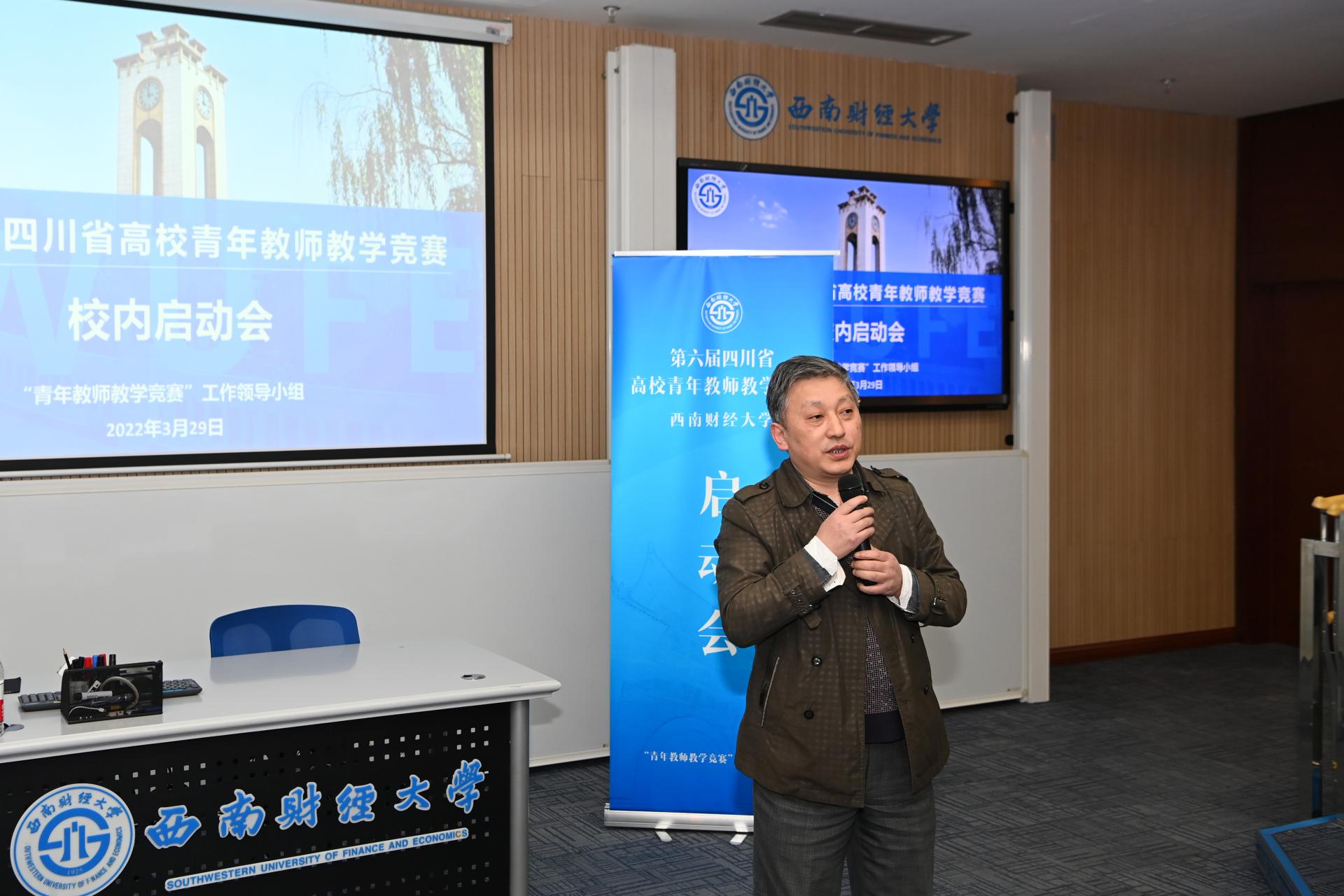3月29日下午,為更好組織我校教師參加第六屆四川省高校青年教師教學競賽,提升團隊核心競爭力,學校在柳林校區格致樓J303學術廳召開校內競賽啟動會。黨委常委、副校長歐兵、李永強,參賽教師、學院指導團隊以及相關職能部門負責人出席了啟動會。校工會常務副主席楊熳霞主持會議。