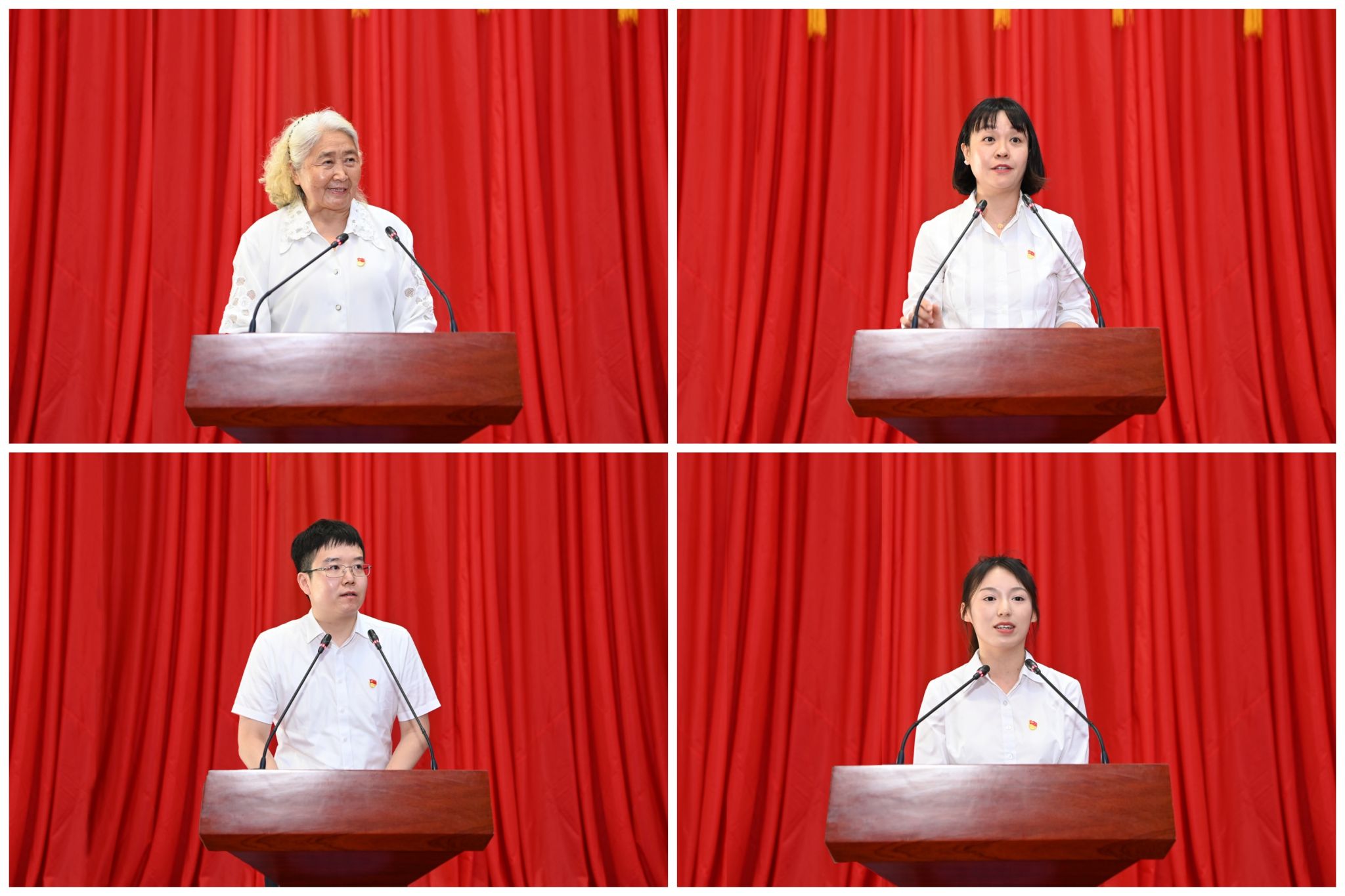 受表彰先進基層黨組織代表蘭敏匯報了一年來工作成績和體會,表示將以更飽滿熱情、更務實作風、更有力措施推動學院事業發展再上新臺階。受表彰先進個人代表文書洋表示將繼續堅持“為黨育人、為國育才”初心使命,樹立“躬耕教壇、強國有我”的志向抱負,為辦好人民滿意的教育、建設教育強國貢獻力量。“黨建工作品牌”“優秀支部工作法”創建單位代表周敏介紹了推動黨建與事業發展深度融合有效做法,表示將強化優勢特色,服務國家戰略,為加快推進數字經濟賦能中國式現代化貢獻力量。新黨員代表岳之楊表示將堅定不移聽黨話、跟黨走,爭做有理想、敢擔當、能吃苦、肯奮斗的新時代好青年,在邁向西財新百年征程中,續寫更加昂揚的青春華章。