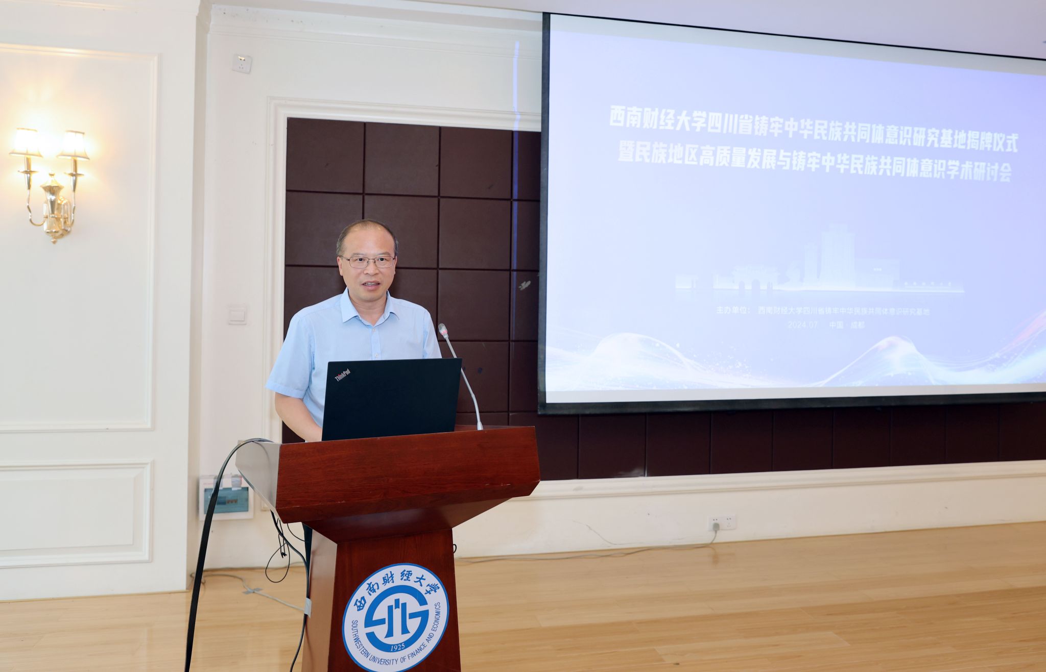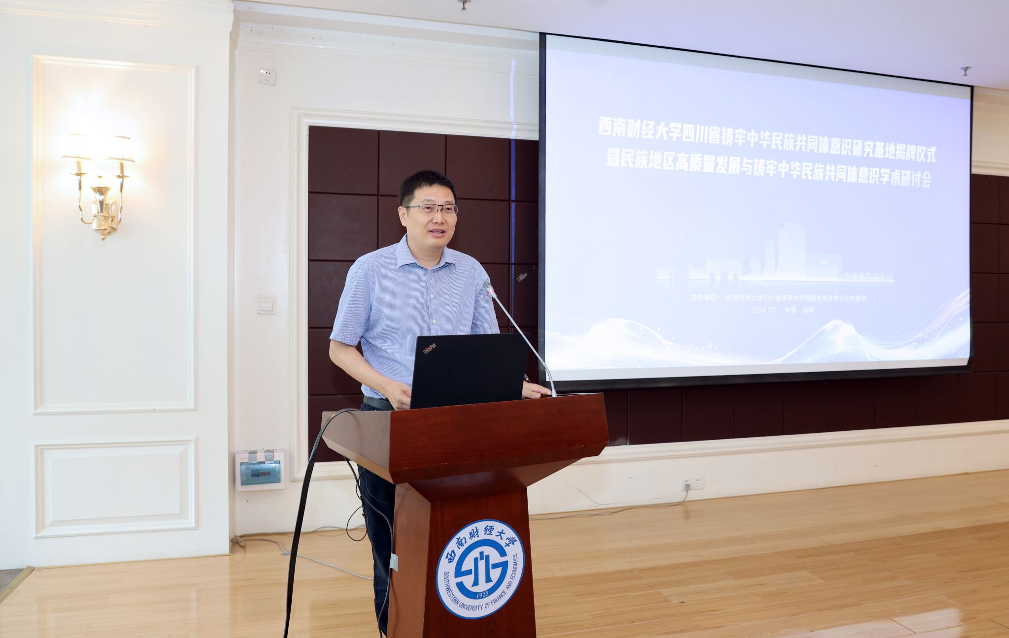 7月3日,西南財(cái)經(jīng)大學(xué)四川省鑄牢中華民族共同體意識(shí)研究基地揭牌儀式暨民族地區(qū)高質(zhì)量發(fā)展與鑄牢中華民族共同體意識(shí)學(xué)術(shù)研討會(huì)在光華校區(qū)舉行。四川省民族宗教事務(wù)委員會(huì)副主任劉向鴻、省委宣傳部二級(jí)巡視員張靖、省民族宗教事務(wù)委員會(huì)協(xié)調(diào)推進(jìn)處處長(zhǎng)劉勁松、省委統(tǒng)戰(zhàn)部民宗處處長(zhǎng)劉杰、省教育廳宣傳思想與統(tǒng)戰(zhàn)工作處處長(zhǎng)李大鵬、康定市委統(tǒng)戰(zhàn)部和金川縣民族宗教局相關(guān)負(fù)責(zé)人,學(xué)校黨委副書記、校長(zhǎng)李永強(qiáng),黨委副書記謝紅,黨委常委、副校長(zhǎng)桂富強(qiáng),西南財(cái)經(jīng)大學(xué)四川省鑄牢中華民族共同體意識(shí)研究基地首席專家邊慧敏,來(lái)自四川大學(xué)、云南大學(xué)、四川民族學(xué)院等學(xué)校的專家學(xué)者,學(xué)校黨委宣傳部、黨委統(tǒng)戰(zhàn)部、科研處負(fù)責(zé)人,社會(huì)發(fā)展研究院師生代表參加會(huì)議。