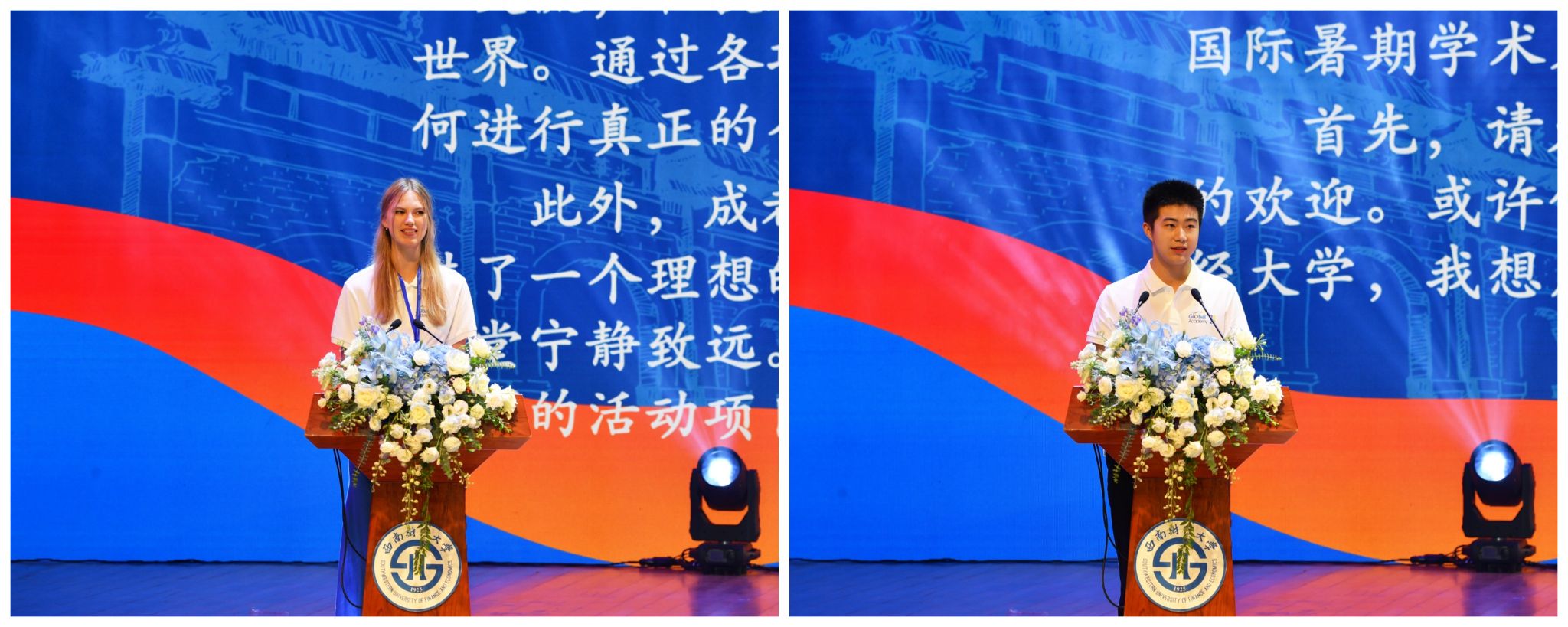 學術營國際學生代表、西財學生代表先后發言,表達對暑期國際學術營盛大開幕的祝賀與期待。