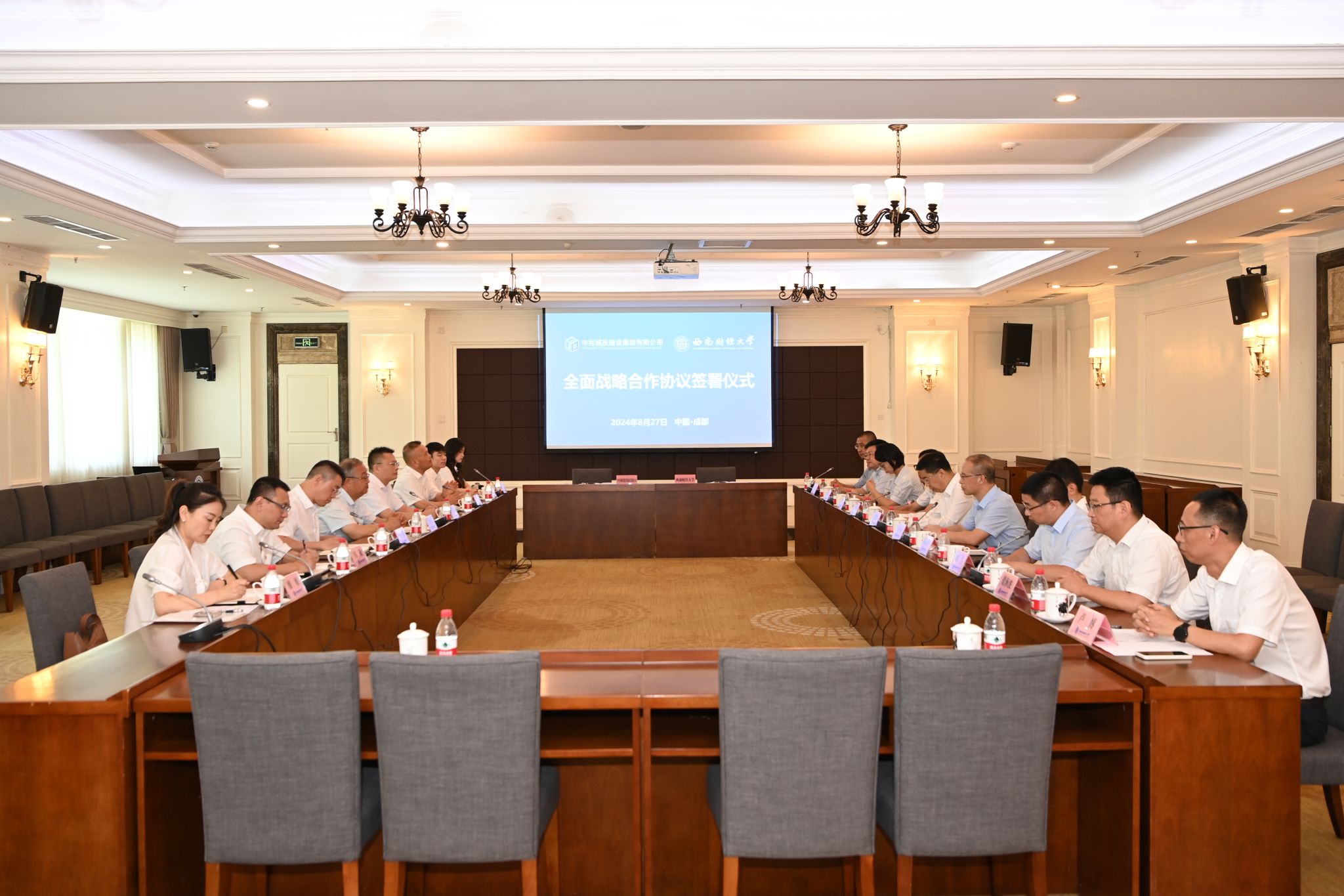 學校黨委辦公室、校長辦公室、發展規劃處、國內合作與發展處、財務處、國有資產管理處、基建處和中經城投四川有限公司相關負責人參加儀式。