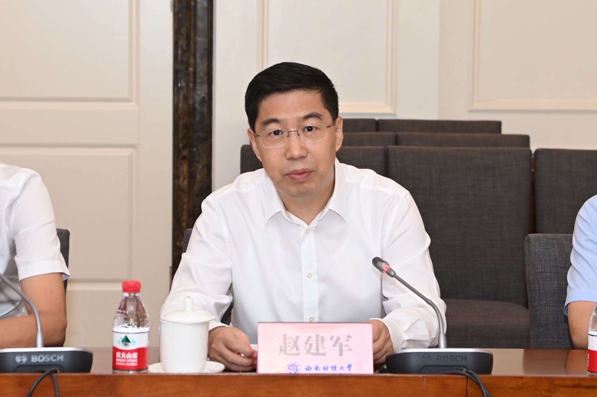 趙建軍對婁德蘭一行表示熱烈歡迎,對中經城投建設集團有限公司對于學校發展關心支持表示衷心感謝。他簡要介紹了學校歷史沿革、基本概況與辦學特色,表示此次全面戰略合作協議簽訂,是雙方深入學習貫徹黨的二十屆三中全會精神的具體實踐,是深化校企合作、共同推動服務國家重大戰略、爭創一流、推動高質量發展的一致行動。希望雙方充分發揮各自特點和優勢,不斷加強合作交流、提高合作質量,打造校企合作新典范,共同攜手服務科教興國、產教融合等國家戰略和成渝地區雙城經濟圈建設等區域發展。