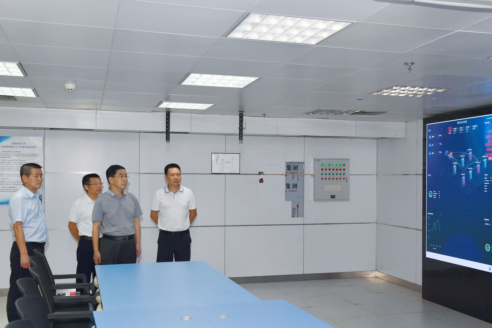 在柳林校區,趙建軍、黨委副書記明海峰一行來到保衛處值班室、消防控制室、頤德樓、圖書館、其孜樓機房、一粟堂、西門迎新點、梅園學生公寓等場所,詳細了解消防安全、智慧教室改造、網絡與信息安全、食品安全等情況,實地檢查迎新準備工作。