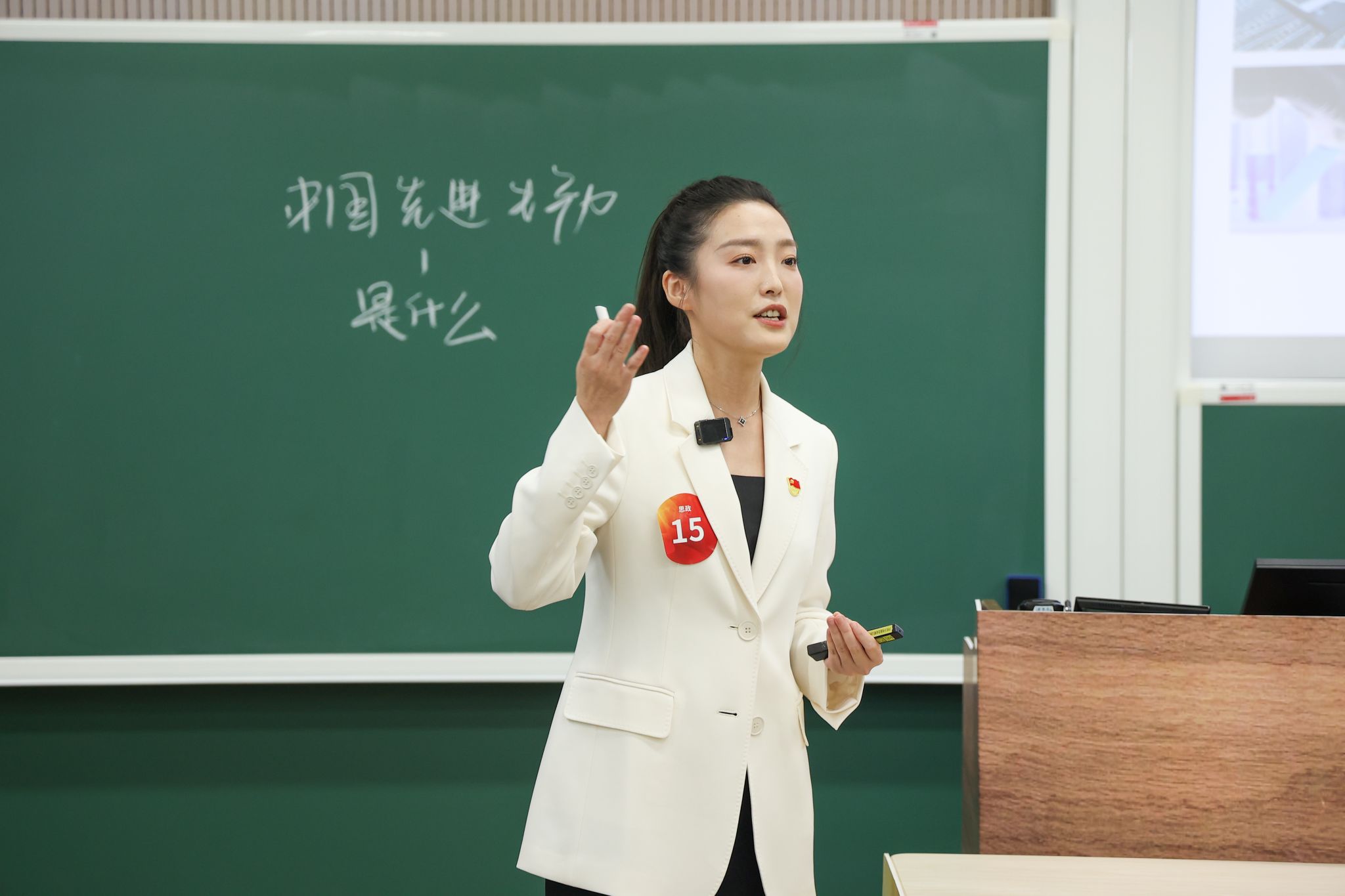 決賽中,宋婧琳老師主講《世紀之交中國先進生產(chǎn)力對黨提出了怎樣的發(fā)展要求?》節(jié)段,詳細闡述了中國先進生產(chǎn)力的發(fā)展要求對黨和國家戰(zhàn)略制定所起到的重要作用,充分展現(xiàn)了她扎實的跨學科知識儲備、嚴密的教學邏輯和沉穩(wěn)的教學風格。