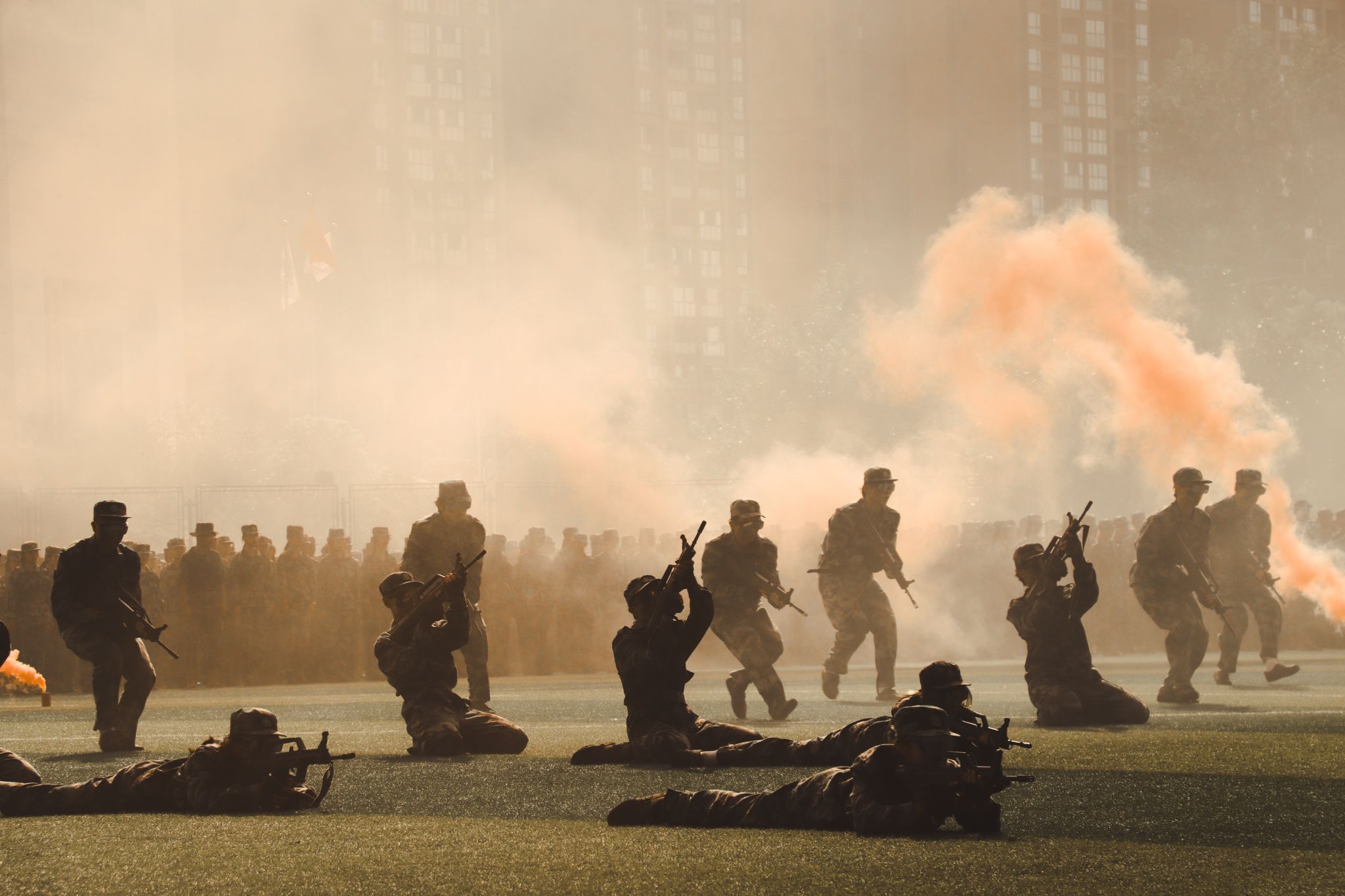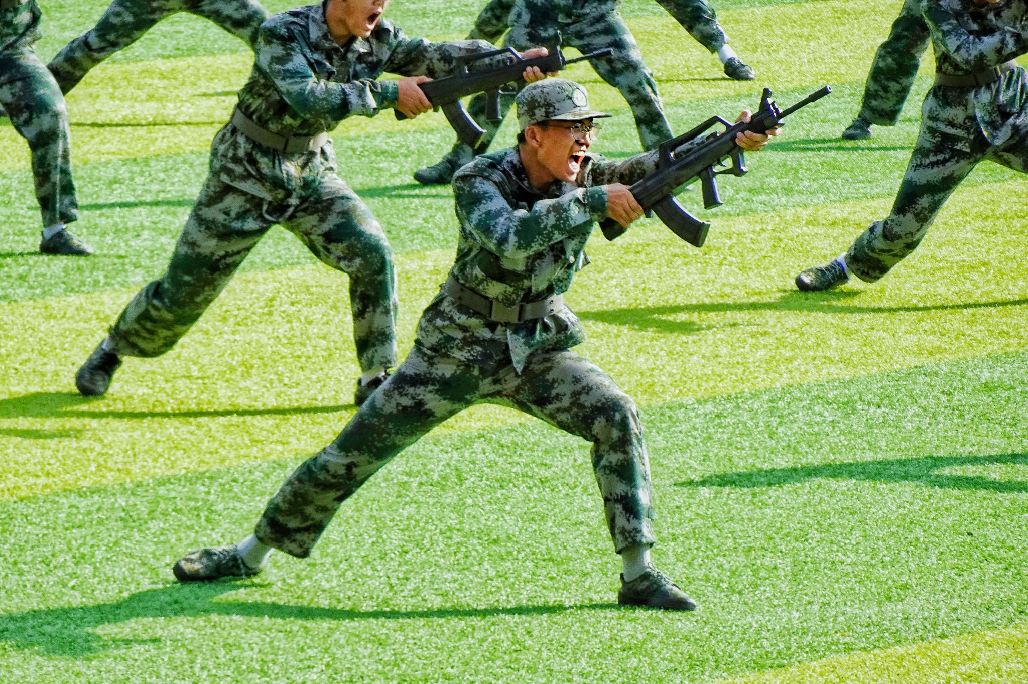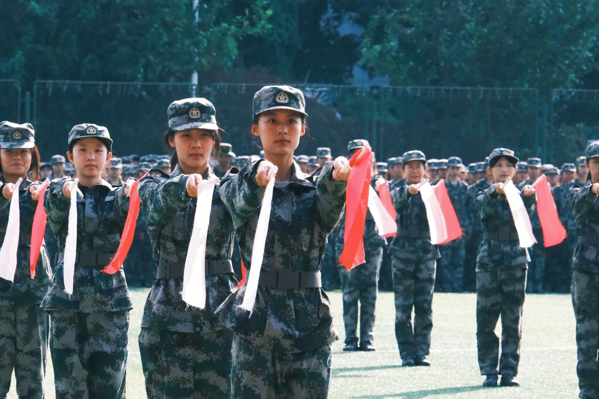 軍訓成果展示中,豪邁磅礴的分列式方陣,颯爽矯健的擒敵、戰(zhàn)術方隊,意氣風發(fā)的旗語方隊,英勇無畏的匕首、刺殺方隊,沉著冷靜的救護方隊,展現(xiàn)出一幅幅生動的愛國主義教育圖景,軍人般的壯志氣魄與同學們飛揚的青春交相輝映,充分展示了西財學子意氣風發(fā)的青春活力和積極進取的精神風貌。