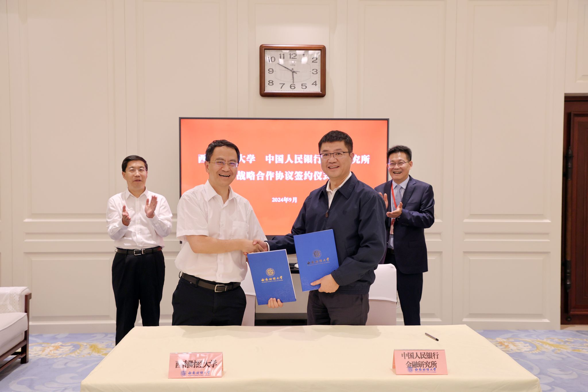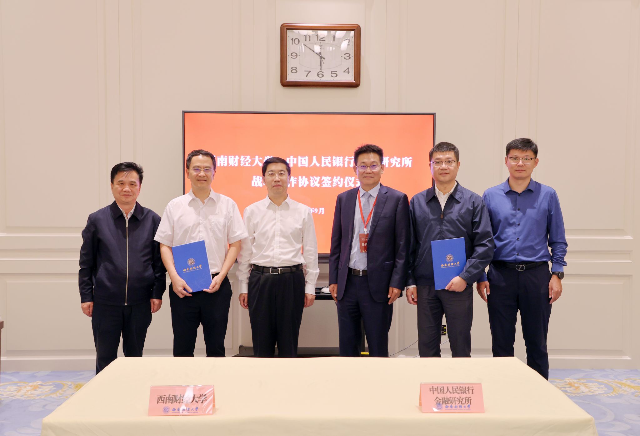 9月24日,學校與中國人民銀行金融研究所戰略合作協議簽約儀式在成都舉行。學校黨委書記趙建軍,黨委常委、副校長王擎;中國人民銀行金融研究所所長丁志杰,副所長雷曜,中國人民銀行四川省分行黨委委員、副行長廖鳳華出席簽約儀式。