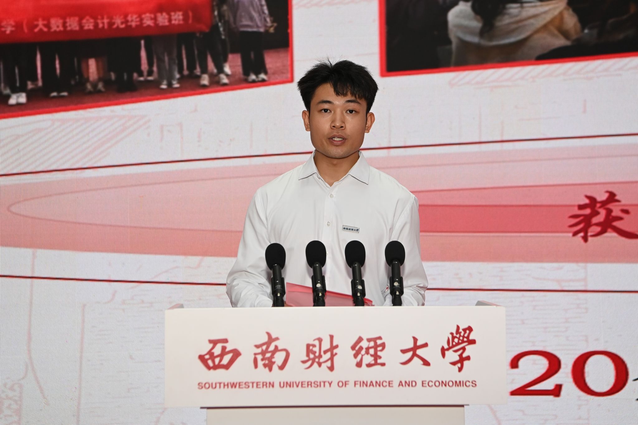 受表彰三好學生代表俞佳琦、優秀學生干部代表陳雨童、先進班集體班長代表陳健宇結合自身學習生活經歷進行先進事跡分享交流,號召廣大西財青年傳承“經世濟民、孜孜以求”之精神,秉承“嚴謹、勤儉、求實、開拓”之校訓,在星辰大海征程中追逐夢想,讓青春為中國式現代化挺膺擔當。