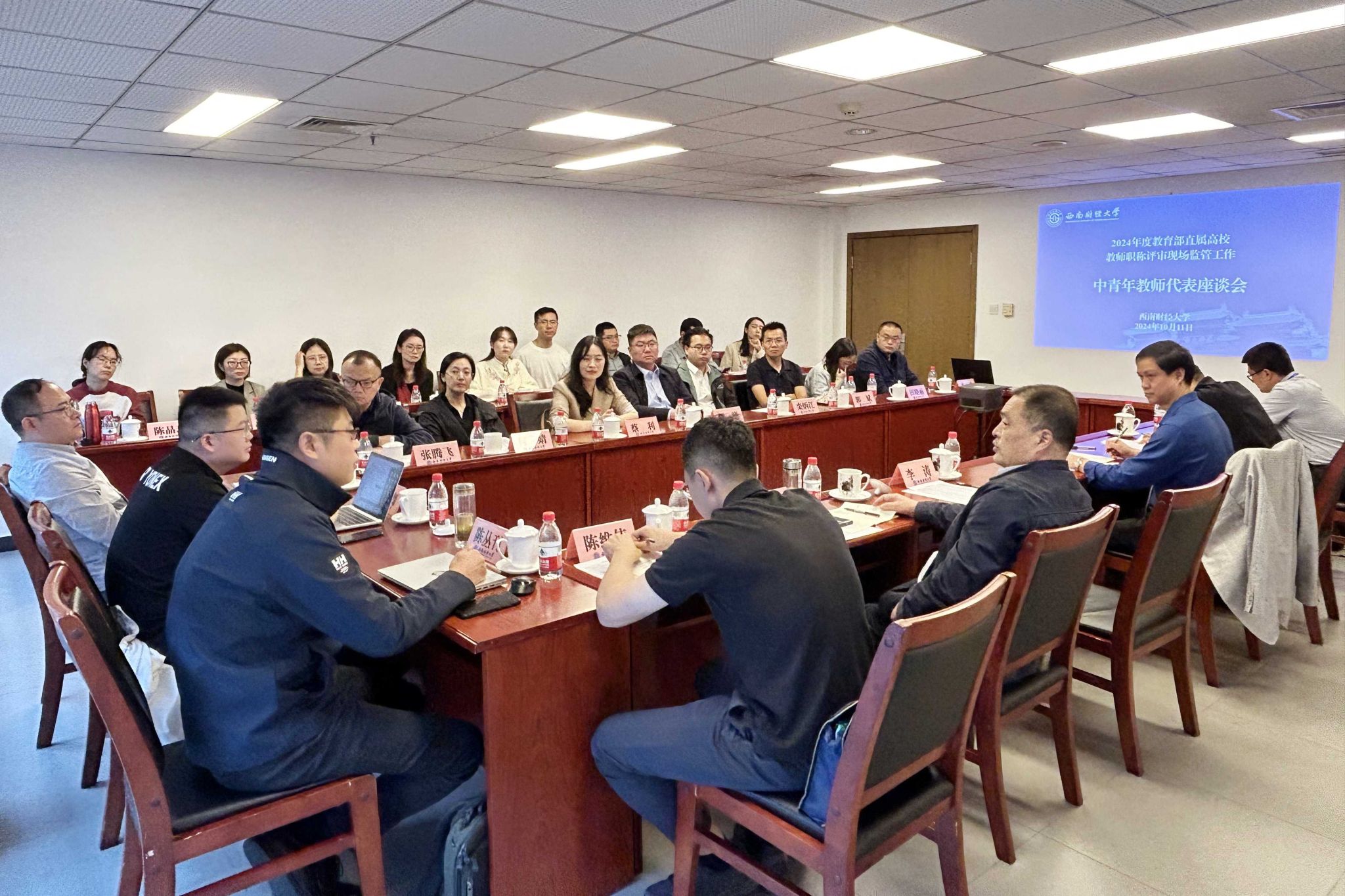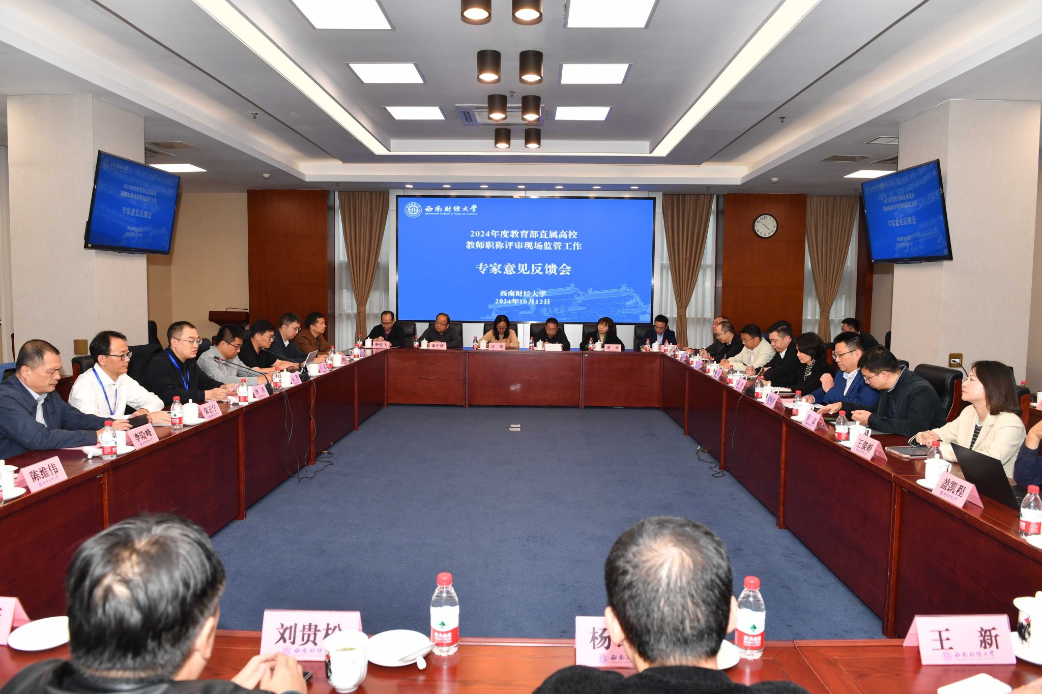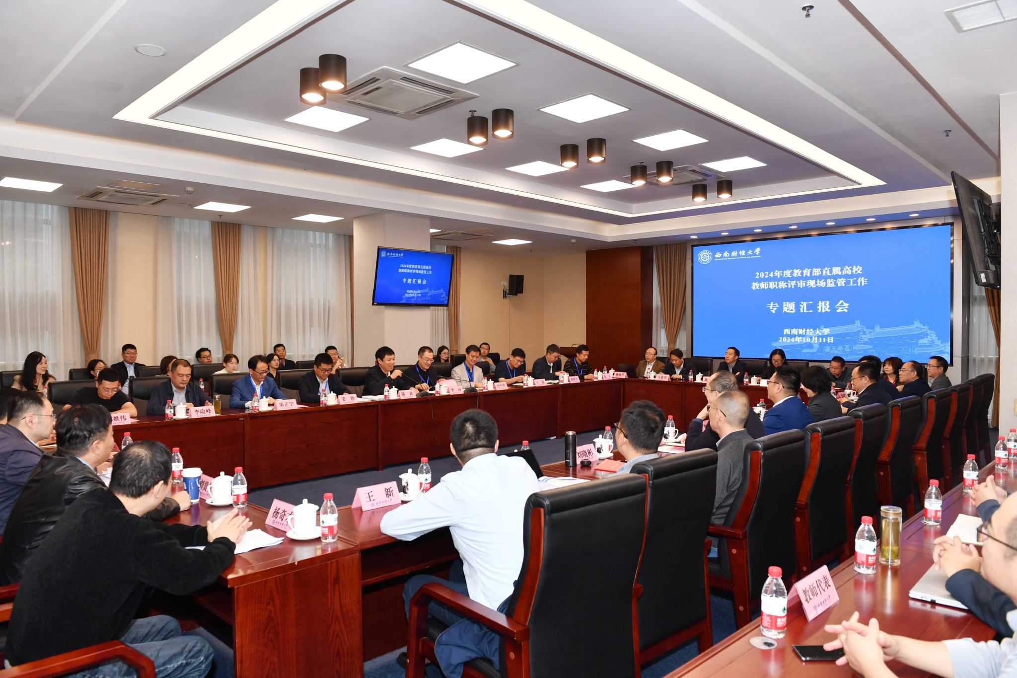 受教育部教師工作司委托,中國(guó)高等教育學(xué)會(huì)于2024年10月10—12日組織專家組到西南財(cái)經(jīng)大學(xué)開(kāi)展教師職稱評(píng)審現(xiàn)場(chǎng)監(jiān)管工作。教育部教師工作司二級(jí)巡視員陳武、西南財(cái)經(jīng)大學(xué)黨委副書記謝紅、中國(guó)高等教育學(xué)會(huì)事業(yè)發(fā)展部副主任姜?jiǎng)俪鱿嚓P(guān)會(huì)議。中央財(cái)經(jīng)大學(xué)副校長(zhǎng)李濤擔(dān)任專家組組長(zhǎng),北京化工大學(xué)人事處處長(zhǎng)汪中明、華中農(nóng)業(yè)大學(xué)人力資源部部長(zhǎng)朱正寧、西安電子科技大學(xué)人力資源部部長(zhǎng)于磊、長(zhǎng)安大學(xué)人事處處長(zhǎng)李險(xiǎn)峰為專家組成員。
