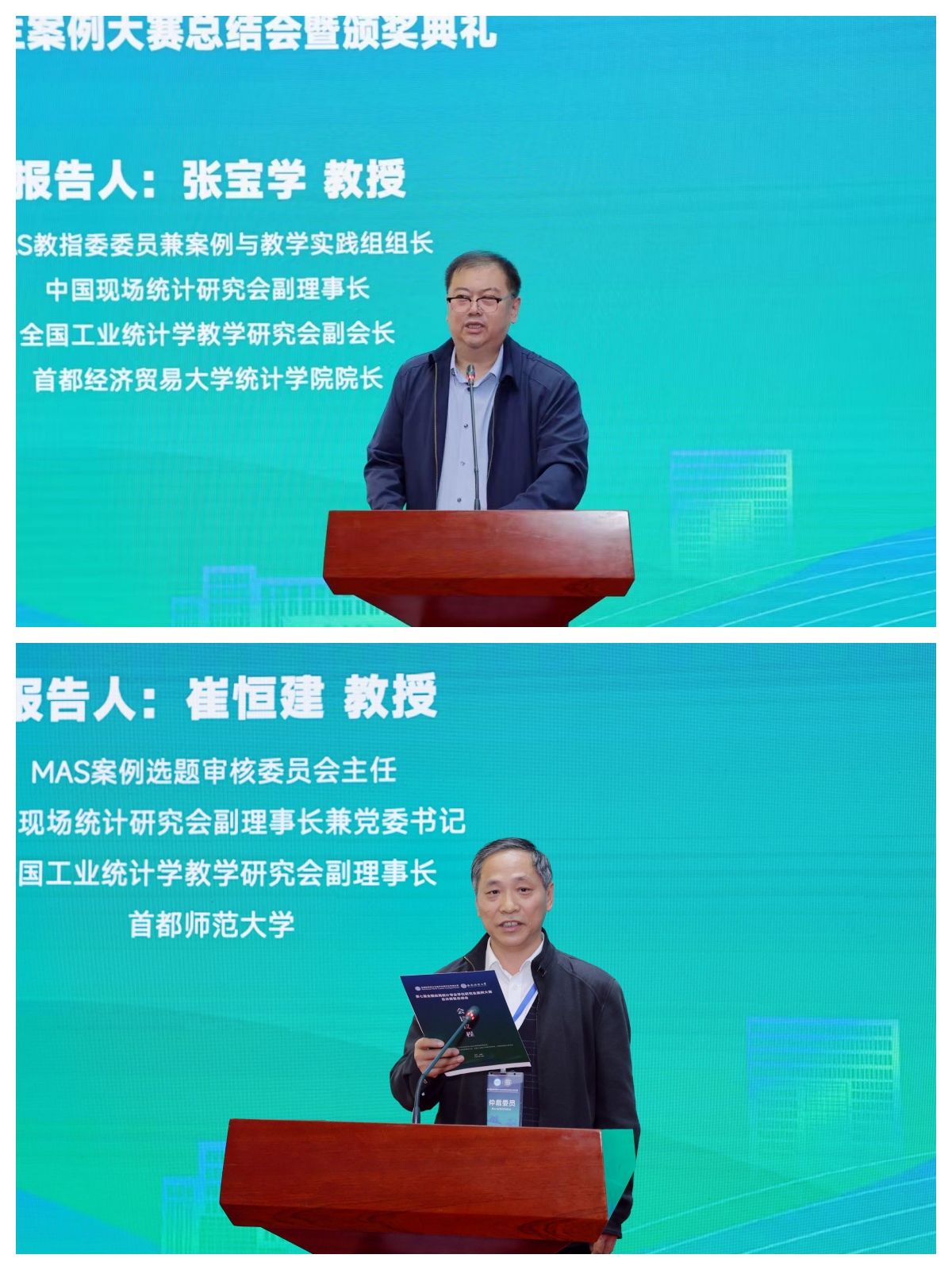 MAS教指委委員兼案例組組長(zhǎng)、中國(guó)現(xiàn)場(chǎng)統(tǒng)計(jì)研究會(huì)副理事長(zhǎng)、首都經(jīng)濟(jì)貿(mào)易大學(xué)統(tǒng)計(jì)學(xué)院院長(zhǎng)張寶學(xué),MAS案例選題審核委員會(huì)主任、全國(guó)工業(yè)統(tǒng)計(jì)學(xué)教學(xué)研究會(huì)副理事長(zhǎng)崔恒建對(duì)本屆案例大賽相關(guān)情況進(jìn)行總結(jié)發(fā)言;陳敏宣讀大賽獲獎(jiǎng)名單,現(xiàn)場(chǎng)頒獎(jiǎng)嘉賓為76支獲獎(jiǎng)隊(duì)伍頒發(fā)了獲獎(jiǎng)證書(shū)。