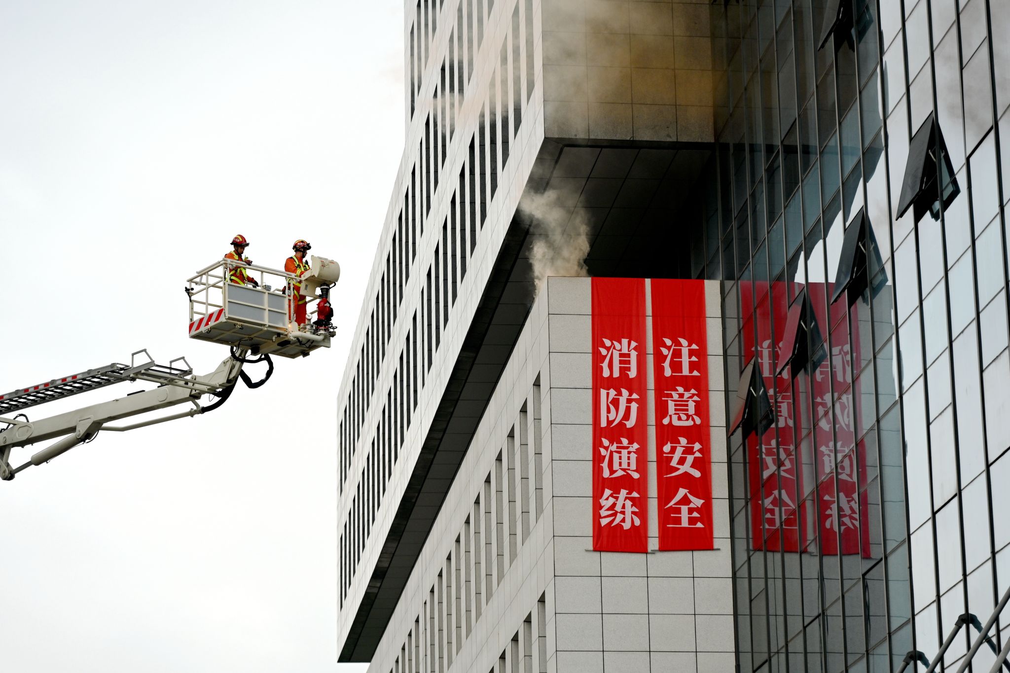簽約儀式結束后,我校與溫江區消防救援大隊共同開展了2024年消防應急疏散演練。