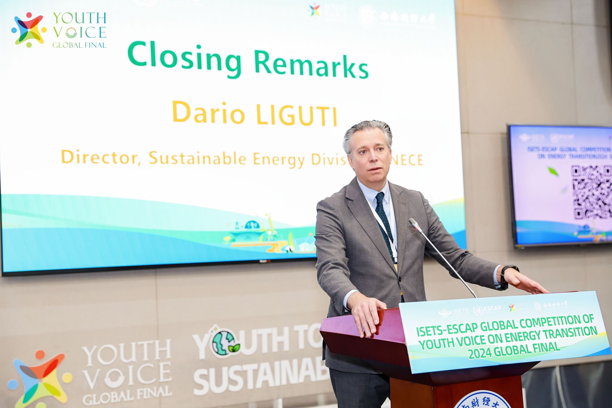 閉幕式環(huán)節(jié),達(dá)里歐·利古提向獲獎(jiǎng)隊(duì)伍表示祝賀,并鼓勵(lì)更多全球青年參與到可持續(xù)發(fā)展與能源轉(zhuǎn)型探討中,為全球能源轉(zhuǎn)型和氣候變化進(jìn)程貢獻(xiàn)自己的力量。