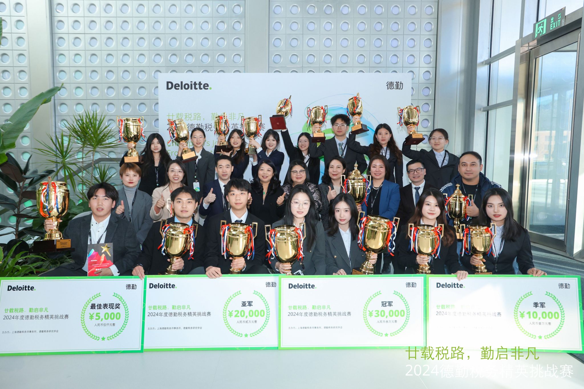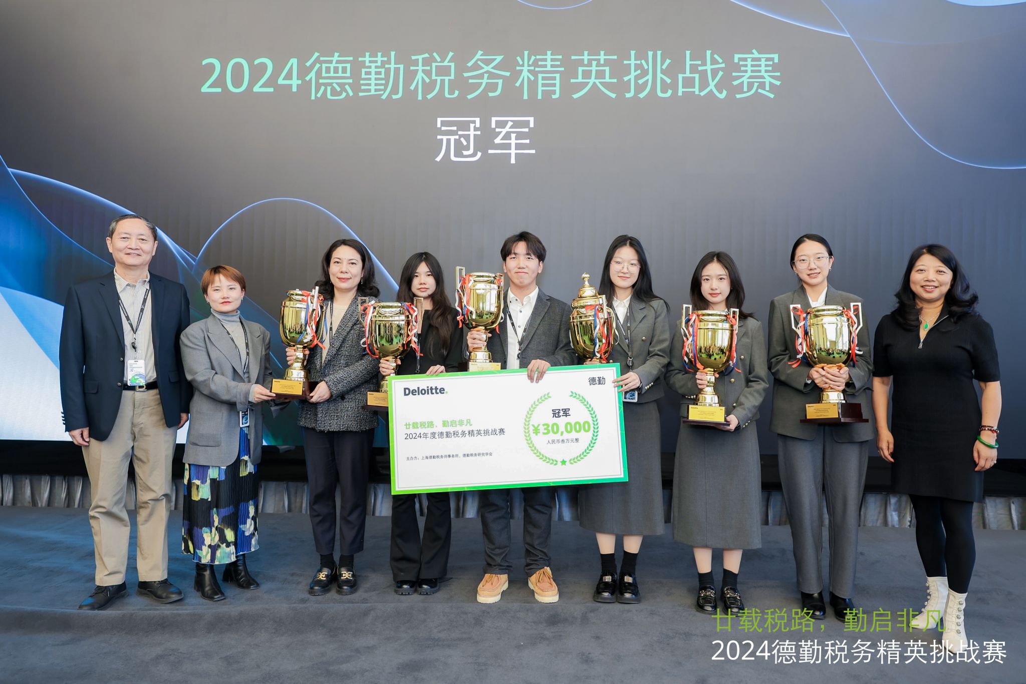 德勤稅務精英挑戰賽旨在推動中國高等教育稅務人才培養,自2004年創辦以來,已成為稅務領域最具影響力的賽事之一。本屆比賽于2024年5月啟動,吸引了包括北京大學、中國人民大學、香港大學等35個城市的59所頂尖高校參賽。經過激烈角逐,13支隊伍脫穎而出晉級半決賽。決賽賽段案例分析聚焦中國企業“出海”中的復雜稅務事項與生成式人工智能(GenAI)在企業財稅場景中的創新運用,闖入決賽的6支隊伍經過案例研析、匯報展示、問詢對決、評委答辯環節的激烈競爭和11個小時鏖戰,我校隊伍最終斬獲全國冠軍。國家稅務總局原副局長張志勇和徳勤中國主席蔣穎為冠軍隊伍頒獎。中央財經大學和中南財經政法大學分獲亞軍、季軍。張力同學榮獲最佳表現獎。