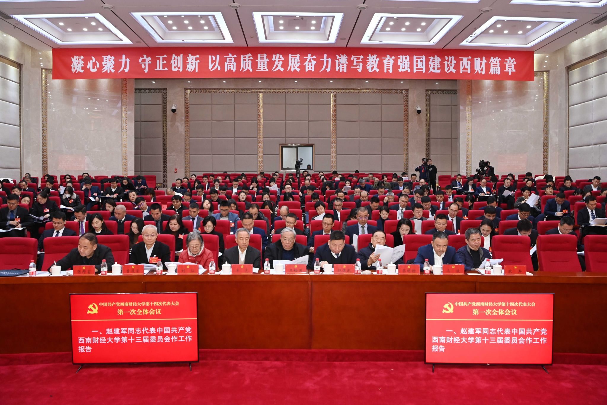 開幕式后,中國共產黨西南財經大學第十四次代表大會第一次全體會議舉行。李永強主持會議。