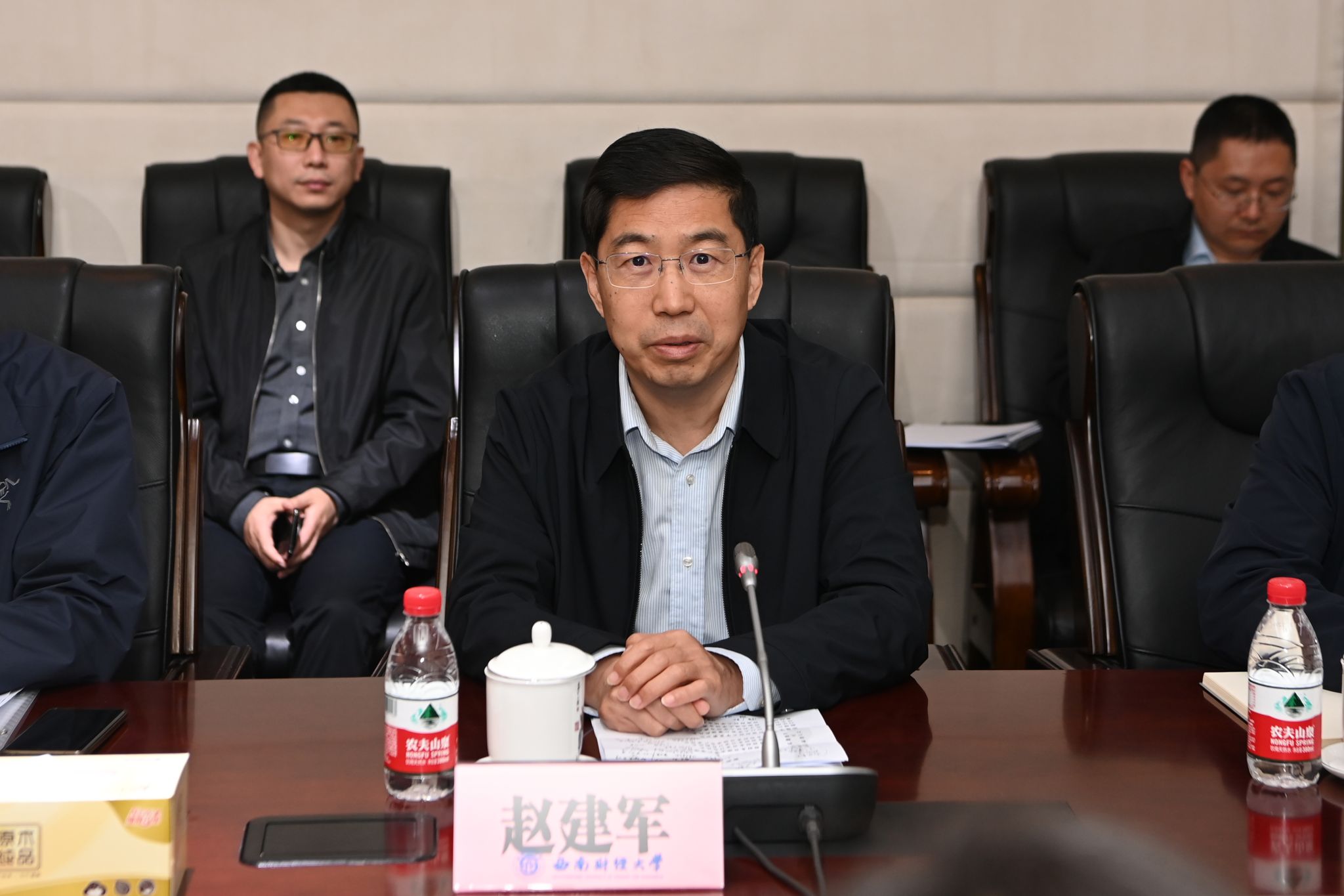 趙建軍代表學(xué)校對魏秦歌一行表示熱烈歡迎,并簡要介紹了學(xué)校歷史、辦學(xué)特色和國有資產(chǎn)管理基本情況。他指出,國有資產(chǎn)是學(xué)校高質(zhì)量發(fā)展的物質(zhì)基礎(chǔ),學(xué)校歷來高度重視國有資產(chǎn)管理工作,堅持規(guī)范管理和提高效率有機結(jié)合,不斷優(yōu)化體制機制,努力實現(xiàn)國有資產(chǎn)“管得好、用得活、效益高”。