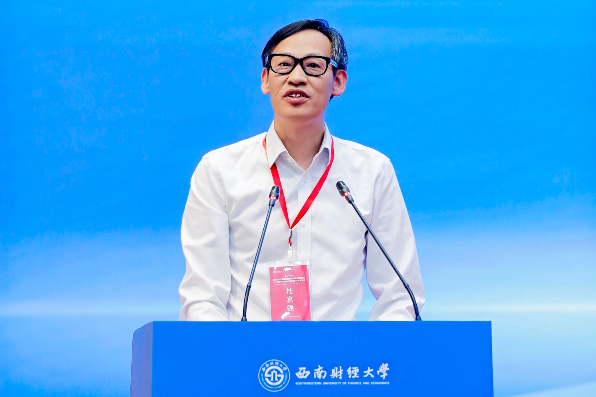 四川省商務(wù)廳黨組成員、副廳長尹奇志代表四川省商務(wù)廳對大會召開表示祝賀,充分肯定西南財經(jīng)大學(xué)對四川商務(wù)高質(zhì)量發(fā)展的智庫支持及雙方合作形成的務(wù)實(shí)成果,期待深化政產(chǎn)學(xué)研用協(xié)作機(jī)制,探索開放發(fā)展新路徑,加快構(gòu)筑向西向南開放戰(zhàn)略高地和參與國際競爭新基地。