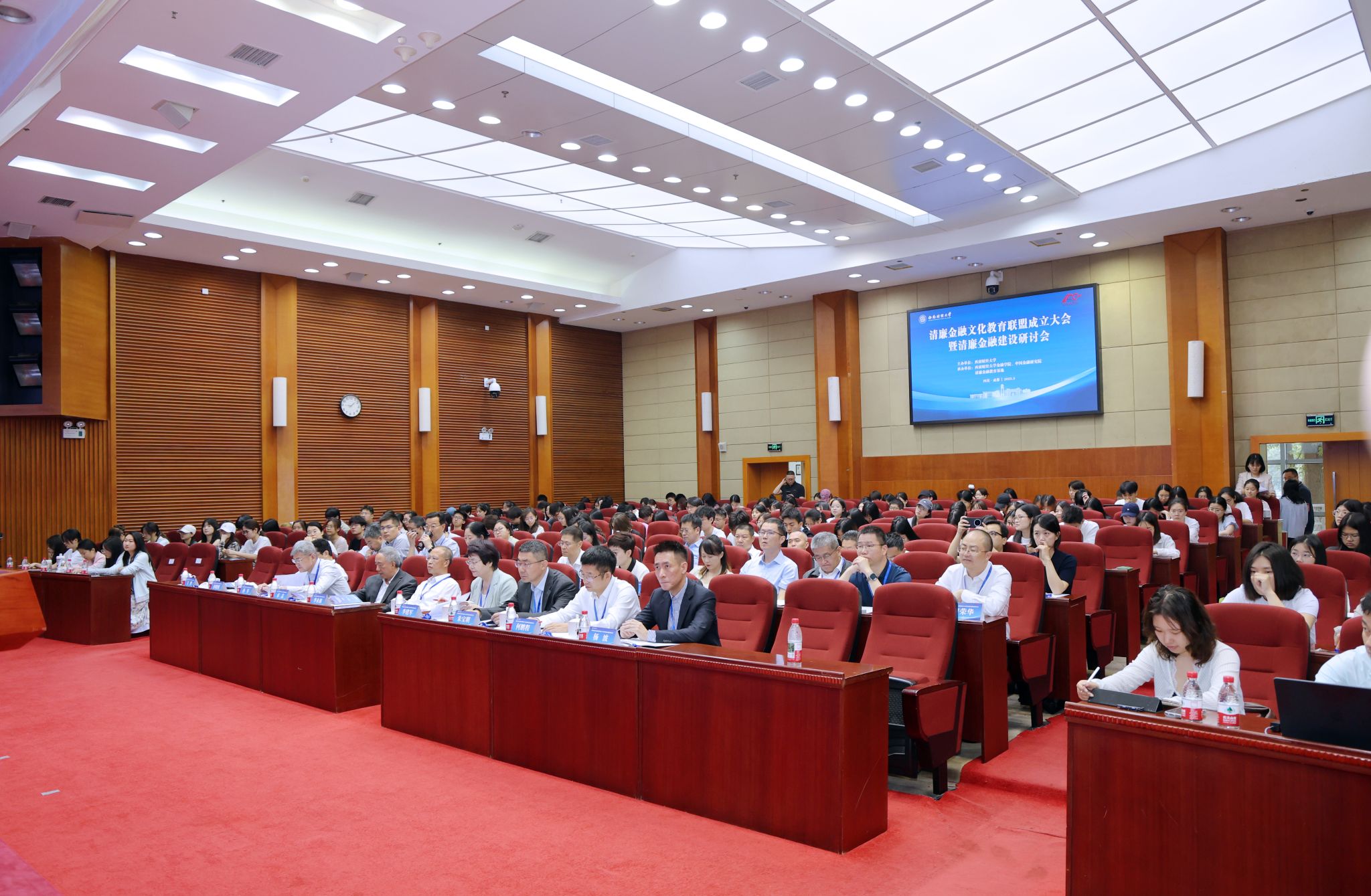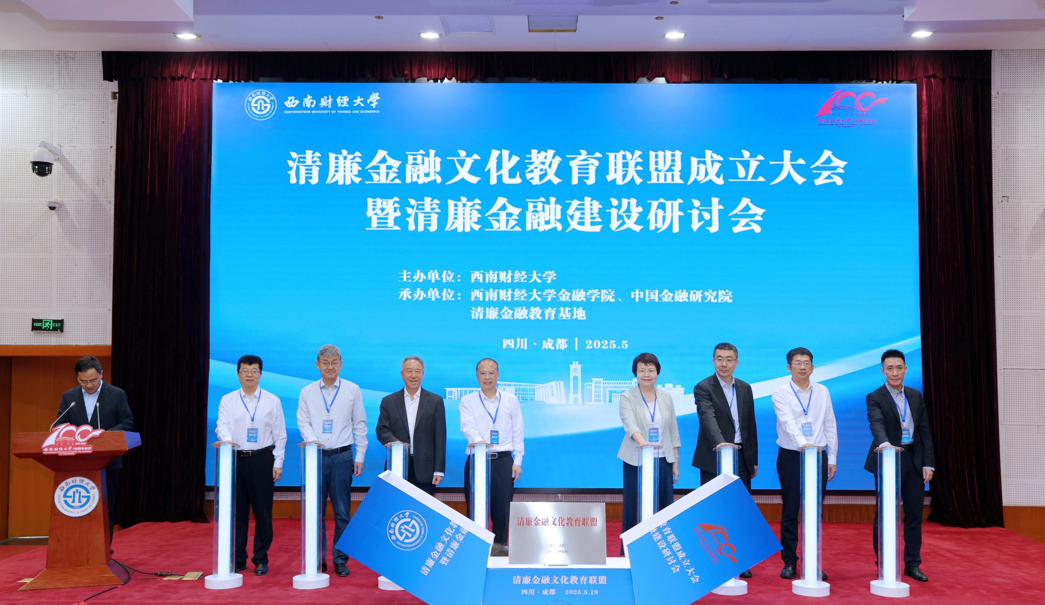 5月18日,清廉金融文化教育聯(lián)盟成立大會(huì)暨首屆清廉金融建設(shè)研討會(huì)在柳林校區(qū)舉行。該聯(lián)盟由學(xué)校倡議發(fā)起,首批聯(lián)盟成員單位包括中央財(cái)經(jīng)大學(xué)、對(duì)外經(jīng)濟(jì)貿(mào)易大學(xué)、上海財(cái)經(jīng)大學(xué)、華南理工大學(xué)、廈門大學(xué)、中南財(cái)經(jīng)政法大學(xué)、四川大學(xué)、電子科技大學(xué)、西安交通大學(xué)、廣東金融學(xué)院等20余所高校。中國(guó)銀行業(yè)協(xié)會(huì)、國(guó)家金融監(jiān)督管理總局四川監(jiān)管局、四川省銀行業(yè)協(xié)會(huì)、保險(xiǎn)業(yè)協(xié)會(huì)及金融行業(yè)代表參加會(huì)議。