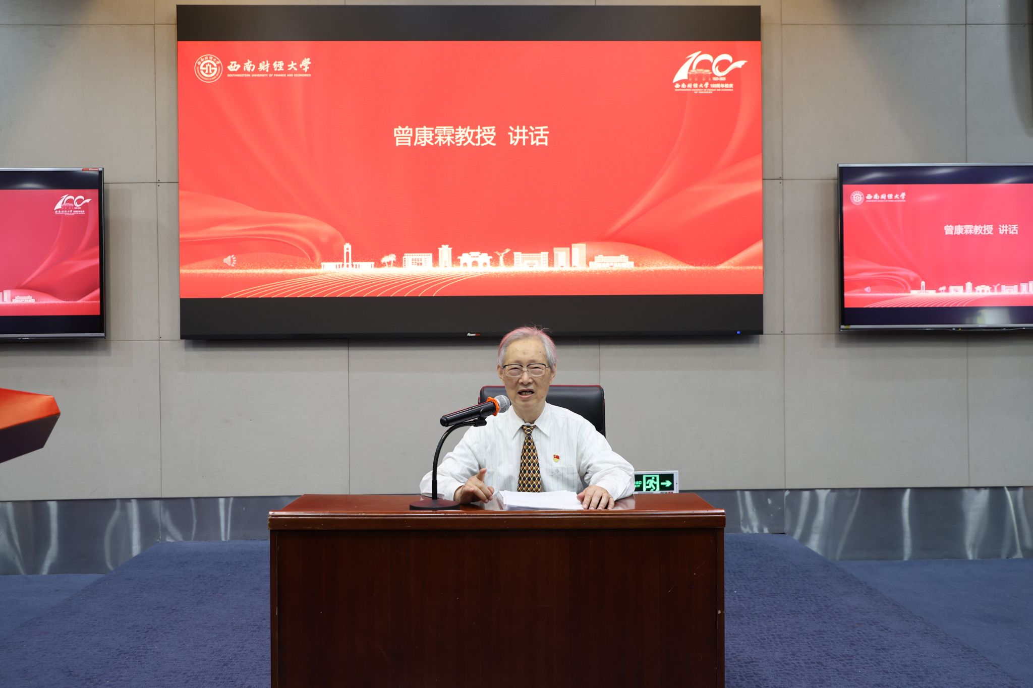 李永強在致辭中代表學校向曾康霖教授及家人表示誠摯感謝和崇高敬意。他指出,曾康霖教授扎根西財、耕耘西財、回饋西財,潛心治學建設金融學科、言傳身教涵育莘莘學子、心懷大愛奉獻教育事業,是西財人心中當之無愧的“大先生”。他勉勵全校師生要以教育家精神為引領,以科學家精神為動力,以“經世濟民、孜孜以求”的西財精神為底色,傳承和弘揚西財大師文化,學習格物致知叩問真理的方法,在新征程上書寫西財人的奮進新答卷!