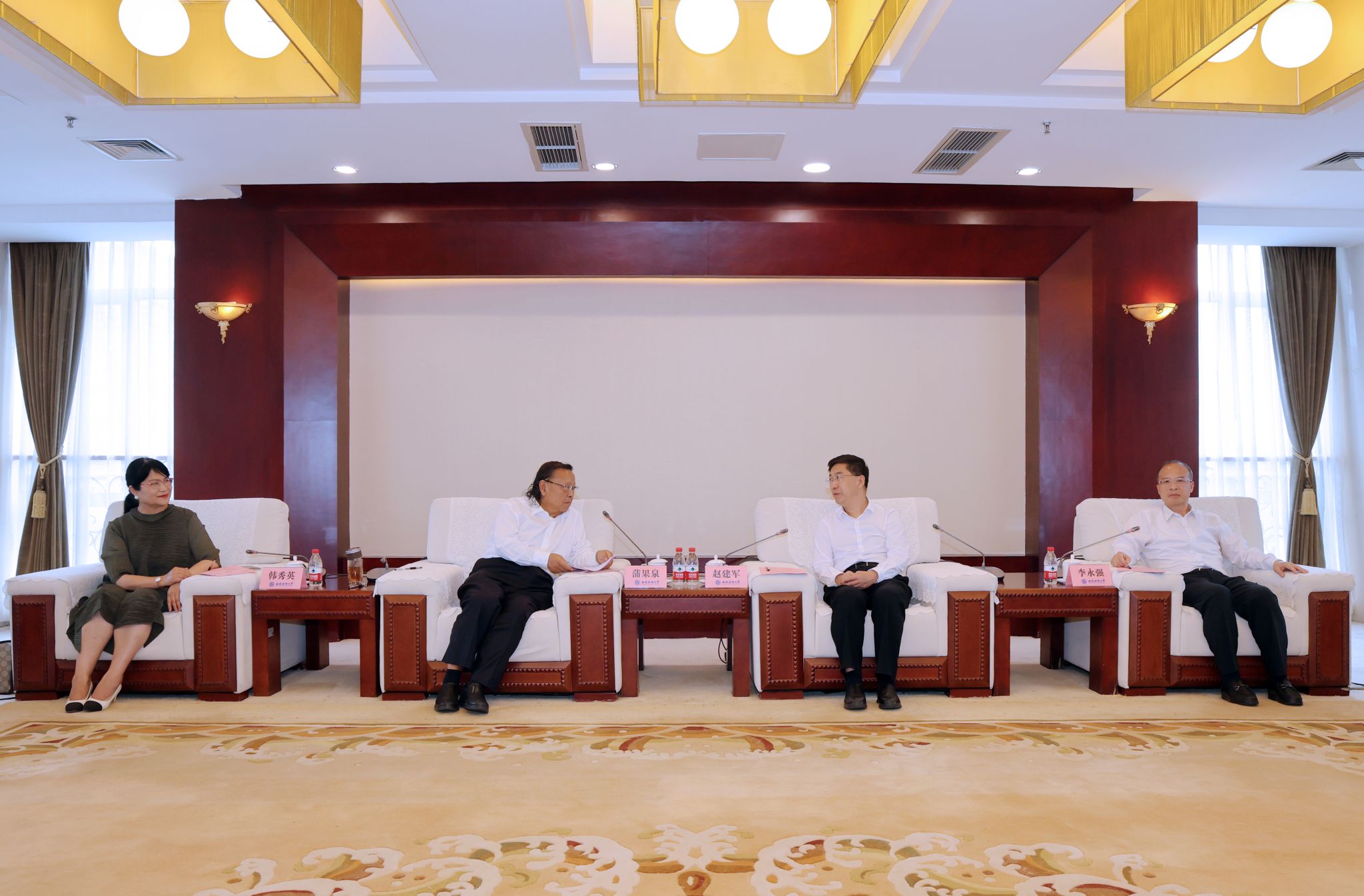 趙建軍對蒲果泉一行表示熱烈歡迎,簡要介紹了學校深化“新財經”取得的突出成效,并對天府學院給予學校的慷慨捐贈表示衷心感謝,希望雙方在提升黨建工作質效、推進人才培養改革、共建優勢特色領域、加強師資隊伍建設等方面開展深入合作,共同為國家和區域經濟社會發展提供智力支持和人才保障。