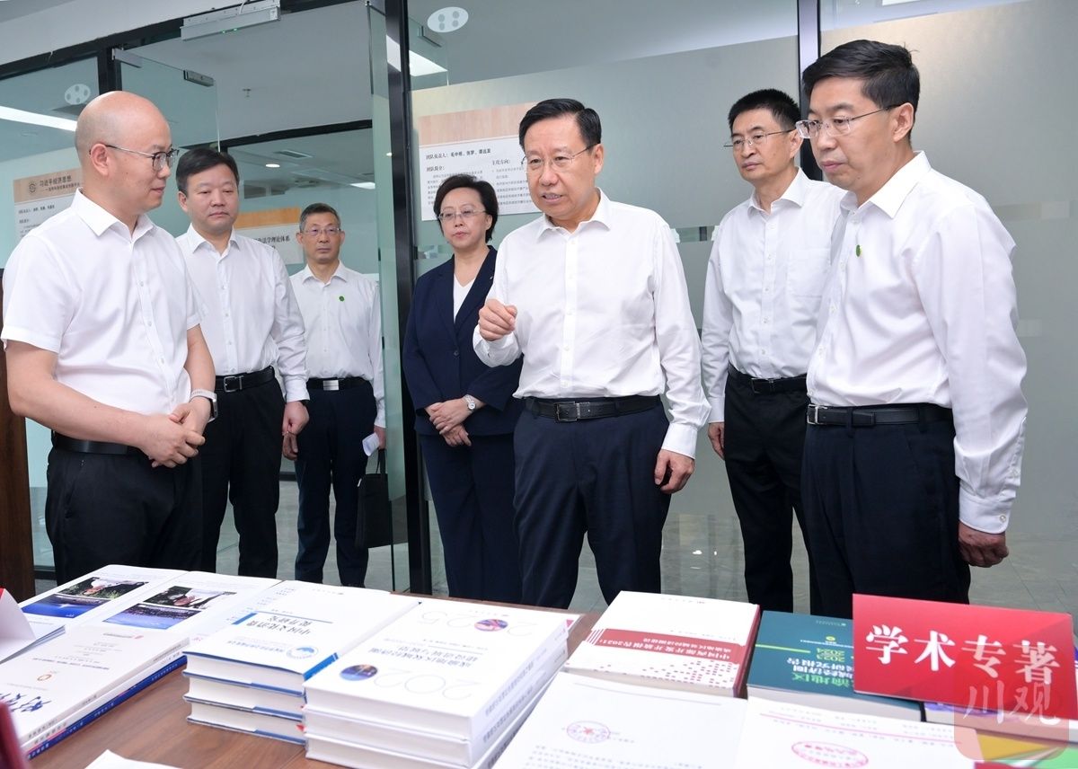調研中,王曉暉來到西南財經大學柳林校區劉詩白書院、全國中國特色社會主義政治經濟學研究中心,詳細了解加強習近平經濟思想理論與實踐研究、經濟學基礎學科拔尖人才培養、服務國家和區域重大戰略實施等情況,對學校在研究闡釋習近平經濟思想方面取得的成果表示贊賞,對學校長期以來為四川經濟社會發展作出的貢獻表示感謝。