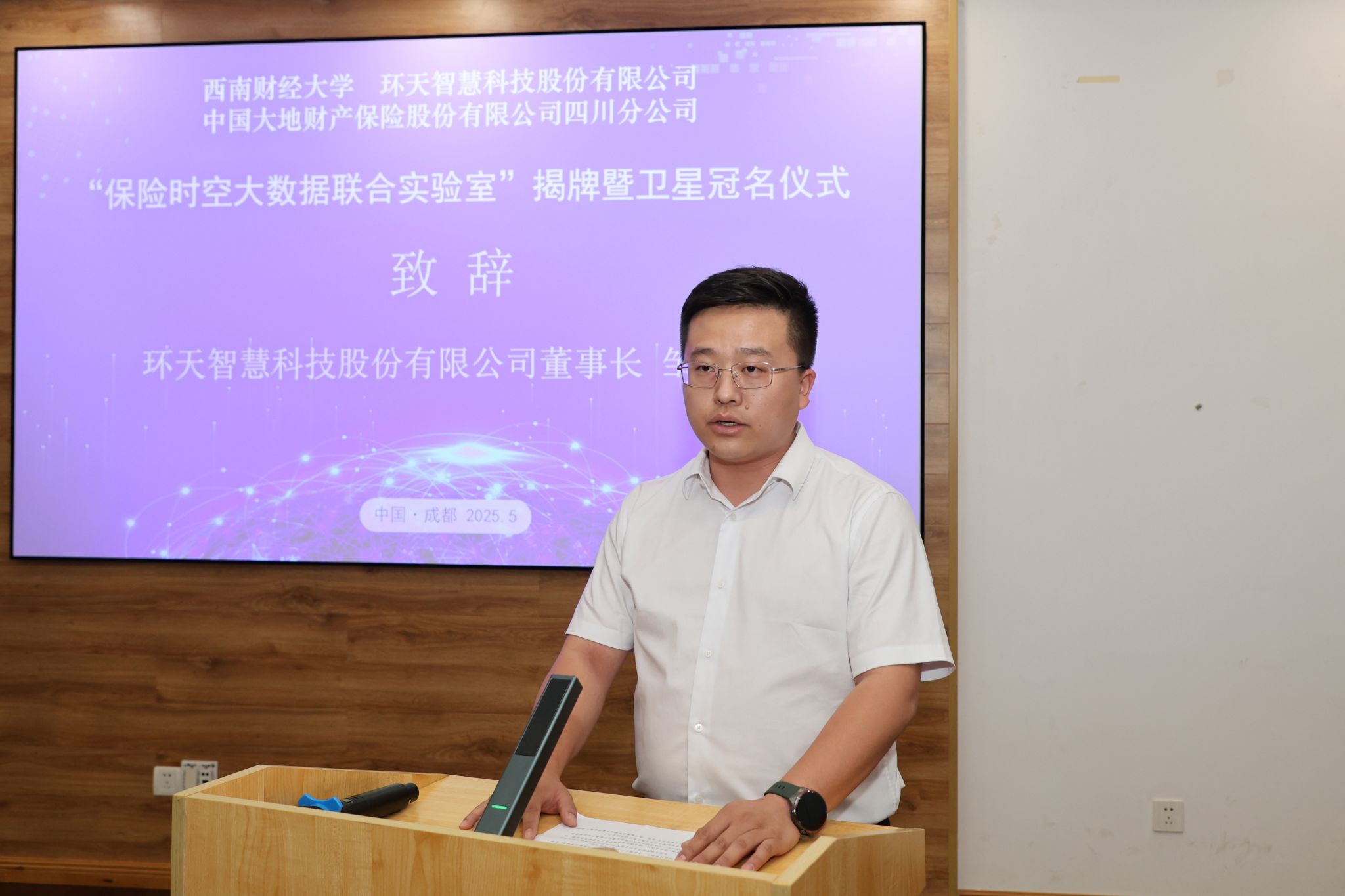 王擎在致辭中表示,學校獲贈衛星冠名權意義深遠。未來,學校將借助環天智慧在時空大數據領域技術實力,結合自身金融保險學科專業優勢,以及中國大地保險四川分公司行業經驗,以衛星資源為依托,開展前瞻性保險時空大數據研究,打造“科研創新、人才培養、社會服務”三位一體平臺,努力推動學校適應保險行業數字化轉型,為教育強國、金融強國和行業發展建設貢獻力量。