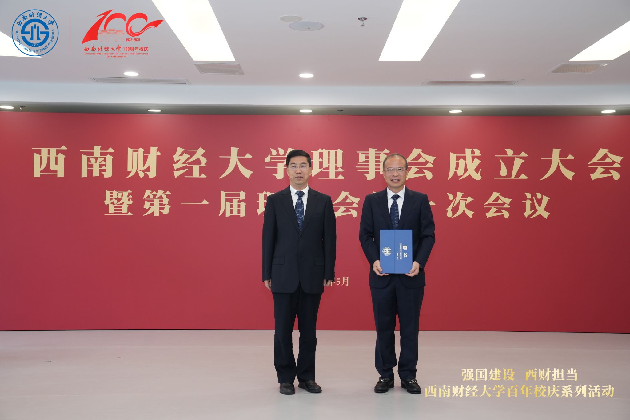 在西南財經大學建校100周年校慶前夕,5月31日上午,西南財經大學理事會成立大會暨第一屆理事會第一次會議在柳林校區舉行。