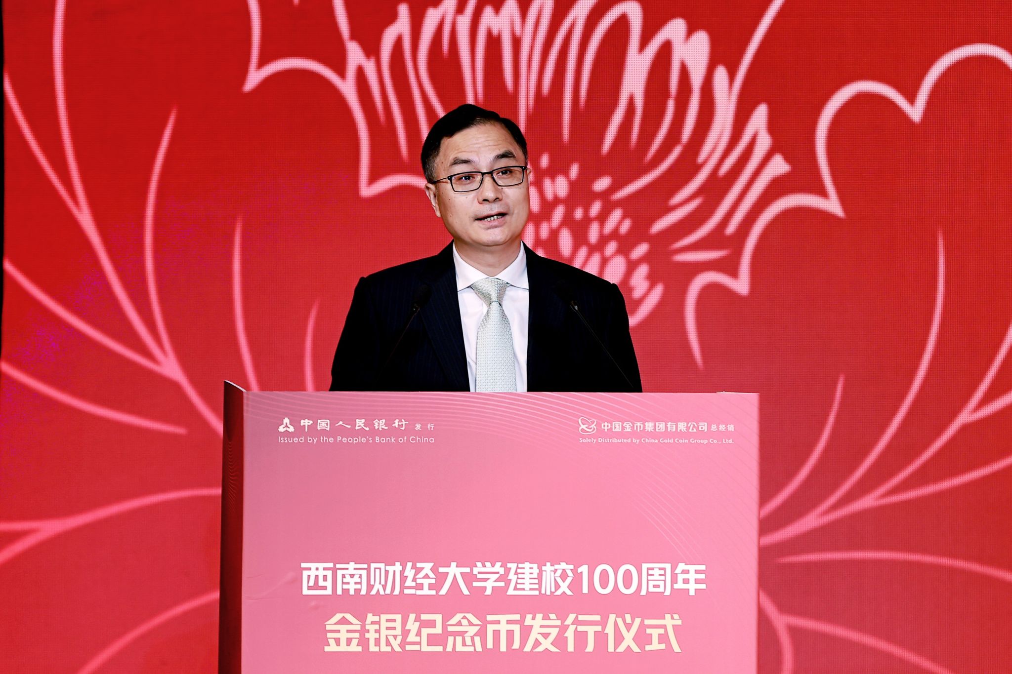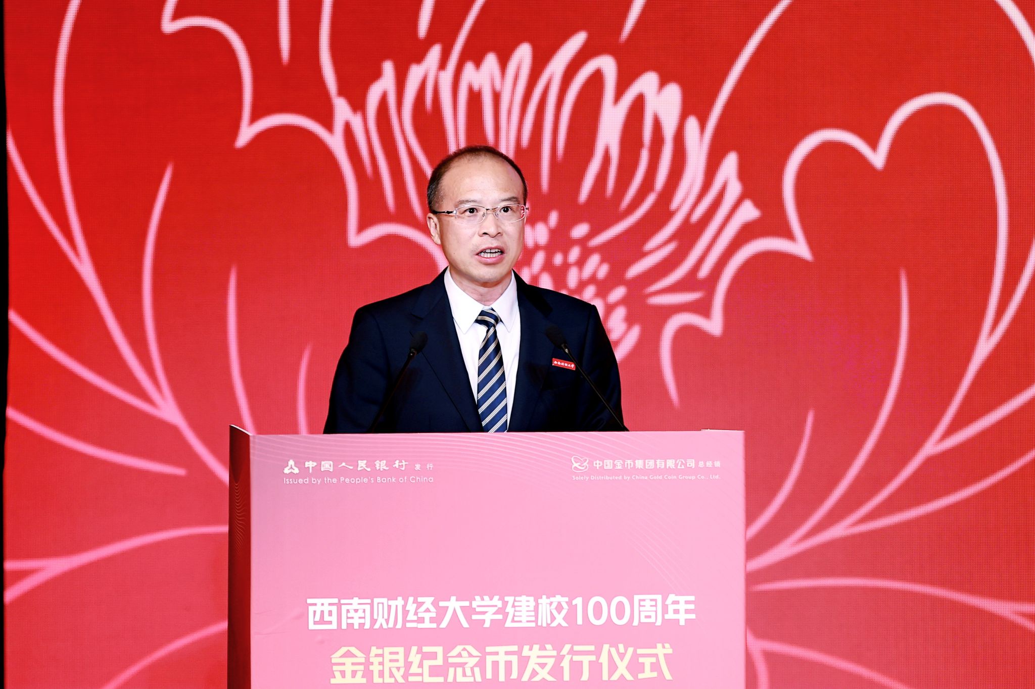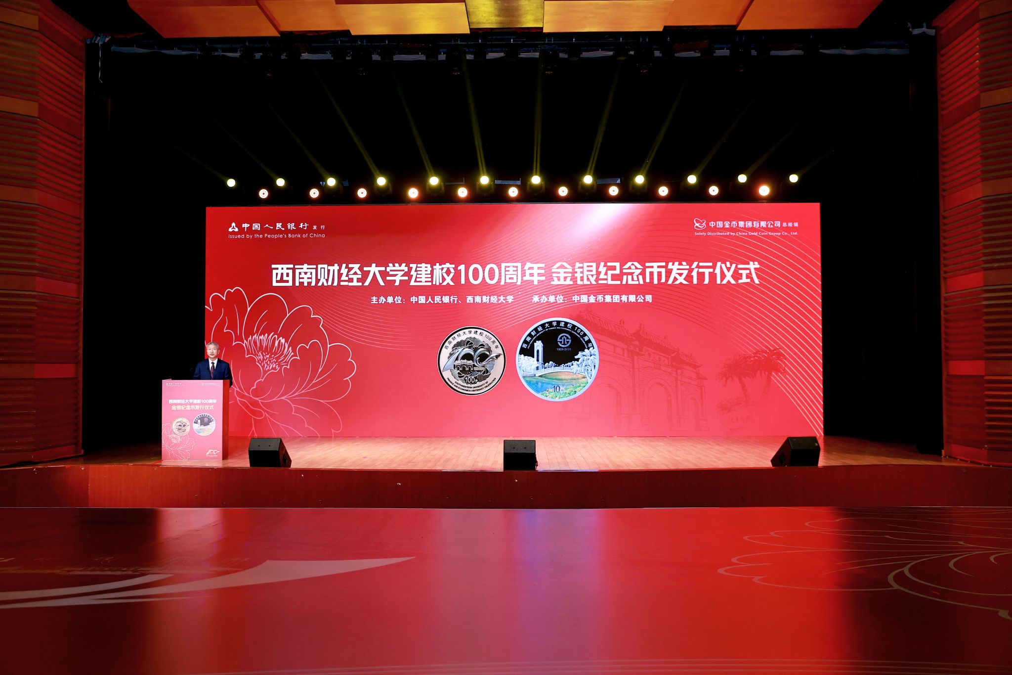 從黃浦江畔到浣花溪旁,西南財(cái)經(jīng)大學(xué)迎來(lái)建校100周年的重要?dú)v史時(shí)刻。中國(guó)人民銀行于2025年6月1日正式發(fā)行西南財(cái)經(jīng)大學(xué)建校100周年金銀紀(jì)念幣一套。當(dāng)日下午,發(fā)行儀式在學(xué)校學(xué)生活動(dòng)中心舉行。學(xué)校黨委副書(shū)記、校長(zhǎng)李永強(qiáng),中國(guó)人民銀行四川省分行黨委委員、副行長(zhǎng)李強(qiáng),中國(guó)金幣集團(tuán)有限公司黨委書(shū)記、董事長(zhǎng)焦瑾璞,中國(guó)金幣集團(tuán)有限公司副總經(jīng)理李澤云出席儀式。校友代表、特邀媒體代表、學(xué)校相關(guān)單位負(fù)責(zé)人及師生代表等參加儀式。學(xué)校黨委常委、副校長(zhǎng)馬永強(qiáng)主持儀式。