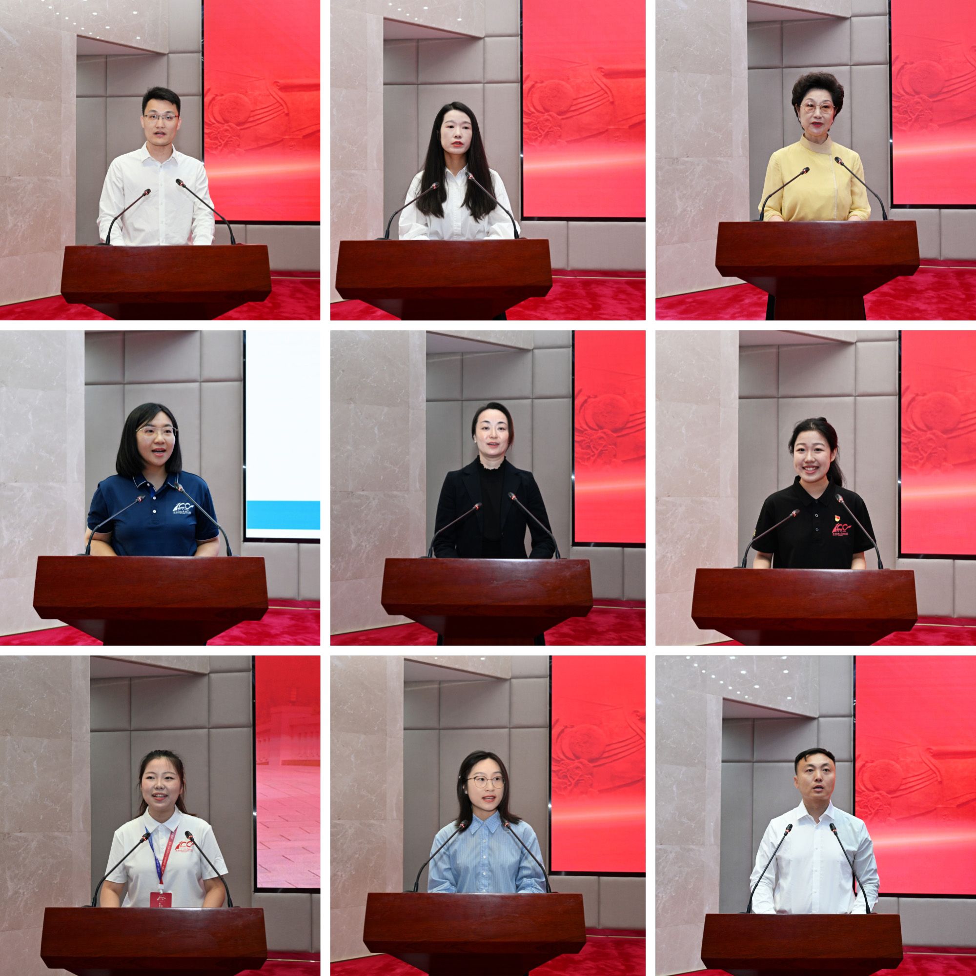 文稿組孫曉東,發展規劃處王靜,重慶校友會會長張義,黨委宣傳部閆文靜,文藝晚會編劇、一級演員萬盛,起點話劇團副團長秦怡,青年志愿者協會會長張蘊琦,后勤服務總公司馬明思,保衛處王澤超等深情回顧了共慶學校百年華誕的難忘與感動,結合自身工作總結分享了成效及感悟。