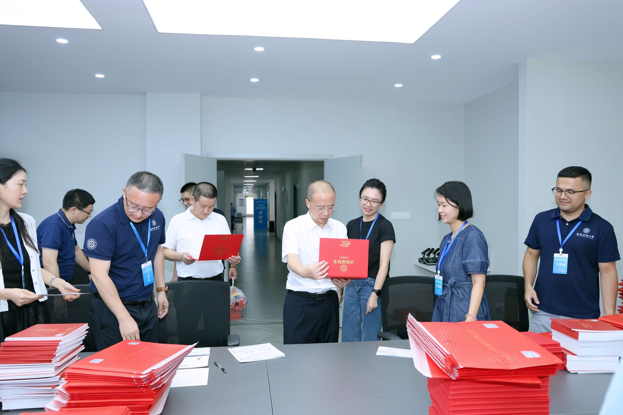 李永強(qiáng)、明海峰在現(xiàn)場(chǎng)詳細(xì)了解了2025年本科招生錄取工作整體安排、進(jìn)展及生源狀況,實(shí)地查看了錄取數(shù)據(jù)處理、通知書打印及裝袋等環(huán)節(jié),聽取了學(xué)生工作部負(fù)責(zé)人工作匯報(bào),對(duì)招生工作給予充分肯定,向全體工作人員的辛勤付出表示感謝。