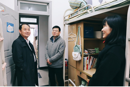 為深入學(xué)習(xí)貫徹教育部關(guān)于加強(qiáng)和改進(jìn)高校領(lǐng)導(dǎo)干部深入基層聯(lián)系學(xué)生工作精神,3月11日下午,學(xué)校黨委常委、副校長(zhǎng)張邦富到公共管理學(xué)院結(jié)對(duì)聯(lián)系寢室進(jìn)行走訪,看望新學(xué)期返校學(xué)生。學(xué)院分黨委書(shū)記趙海程、副書(shū)記鄭良秀及學(xué)生輔導(dǎo)員陪同。
