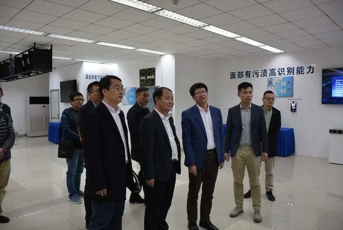 會前,調研組一行參觀了寬帶聯網智能低空雷達系統、管制員飛行模擬機、塔臺模擬系統、空中交通管制系統、高精度人臉識別終端等產品。