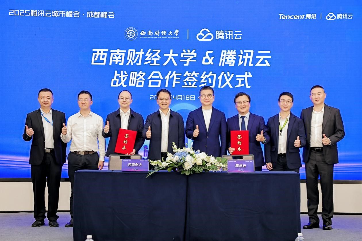 4月18日,西南財經大學與騰訊云計算(北京)有限責任公司(以下簡稱“騰訊云”)在騰訊云成都峰會上舉行合作協議簽署儀式。西南財經大學黨委常委、副校長王擎,騰訊集團副總裁、政企業務總裁李強出席簽約儀式。