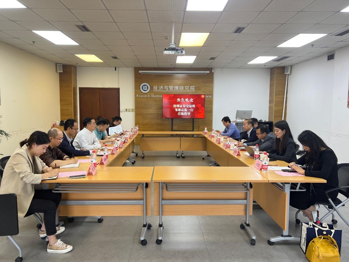 10月17日下午,深圳證券交易所基金部總監鄒雄、富國基金管理有限公司總經理助理張鵬和東方財富信息股份有限公司市場部總監安佳媛等人到訪經濟與管理研究院。西南財經大學學生職業規劃與就業指導中心主任徐利軍、國內合作與發展處處長趙海程,經濟與管理研究院常務副院長董艷、黨委書記黃文、黨委副書記魏望以及相關教師參加了座談交流。
