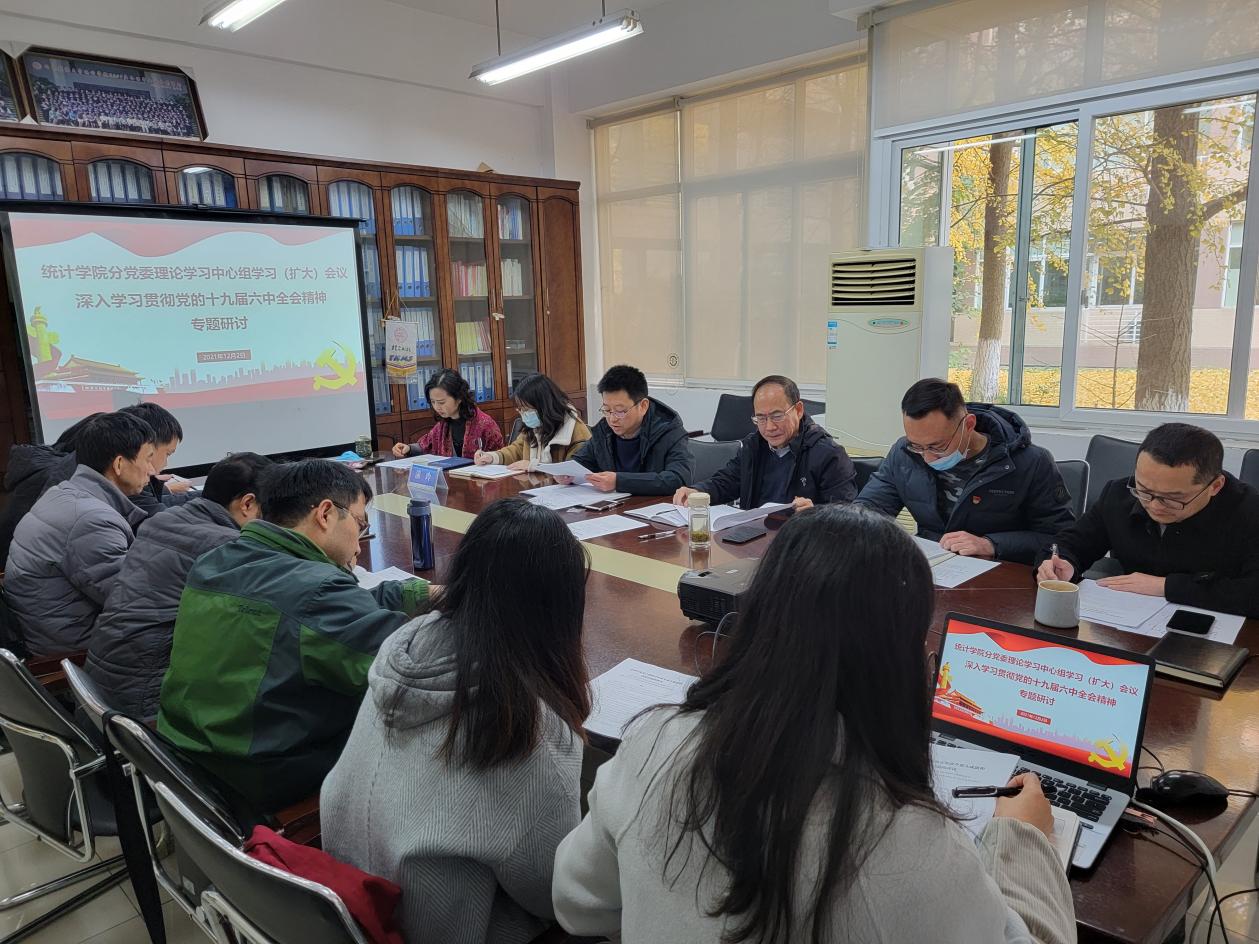 為深入學習貫徹黨的十九屆六中全會精神,統計學院于2021年12月2日下午在通博樓B110會議室開展黨的十九屆六中全會精神專題研討。學校黨史學習教育第14指導組成員和學校第二巡察組成員蒞臨會議,學院分黨委理論學習中心組成員參加會議,學院師生黨支部書記代表列席學習會。學院分黨委書記黃海波主持會議。
