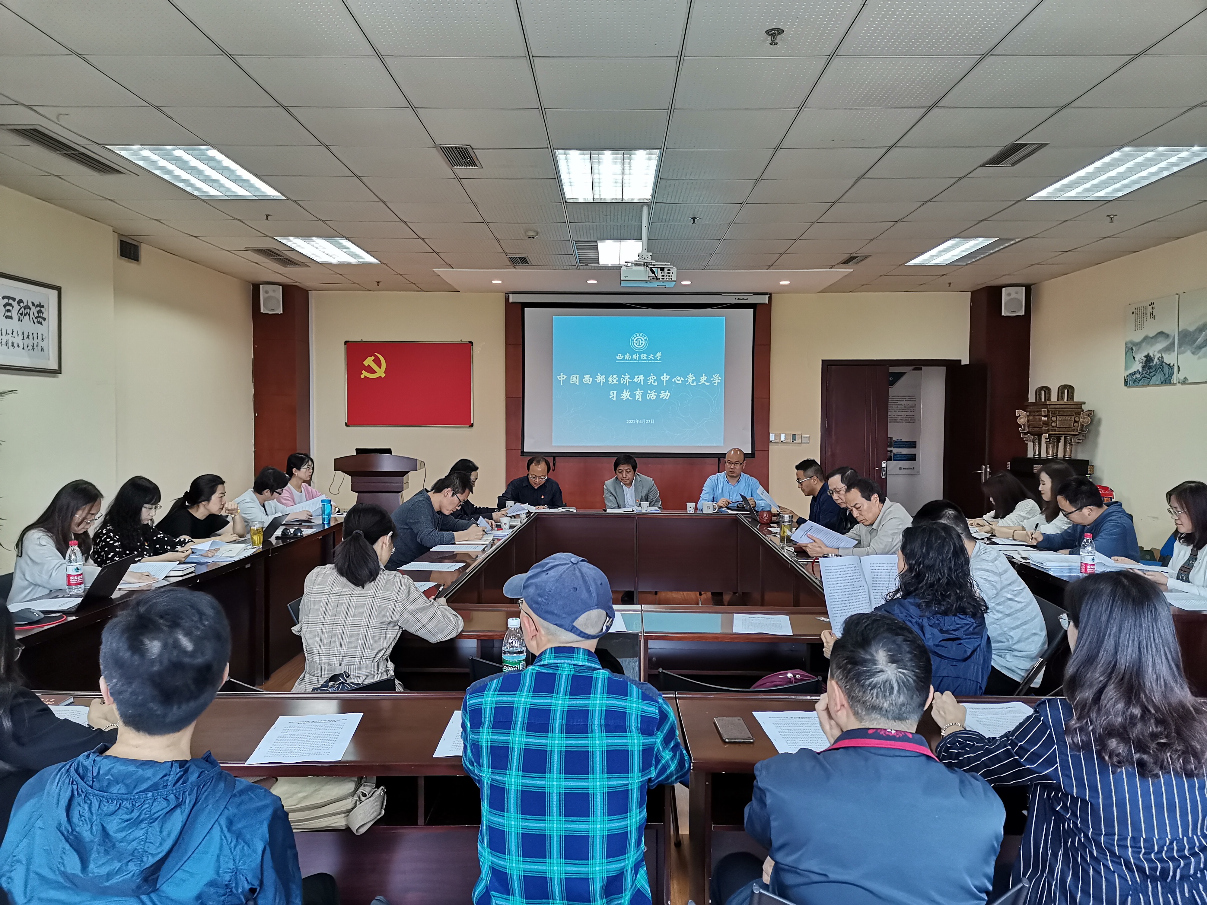4月27日下午,學校黨委常委、常務副校長彭龍在格致樓1114會議室以“恢弘的黨史”為題講授黨史學習教育專題黨課。學校黨史學習教育第6指導工作組劉萱同志和張璐同志、中國西部經濟研究中心全體教職工、學生黨支部書記、學生代表參加學習。